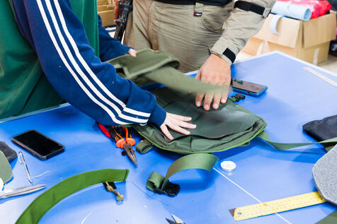 Fashion students volunteer to do sewing work on Israeli army uniforms. Repairs, but also customization to adjust pockets or seams, or improve wearability.
