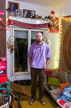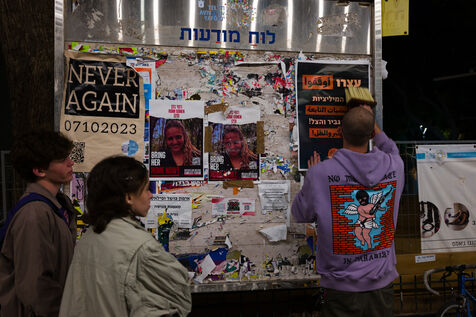 En Israel, suite aux attaques terroristes du Hamas le 7 octobre, de jeunes activites de gauche collent des affiches dans les rues de Tel-Aviv. Non au racisme, non a la violence, Tel-Aviv Yaffo appartient a tous. Stop les milices de Ben Gvir et Ha-Tzel. Partenariat, egalite et voisinage.