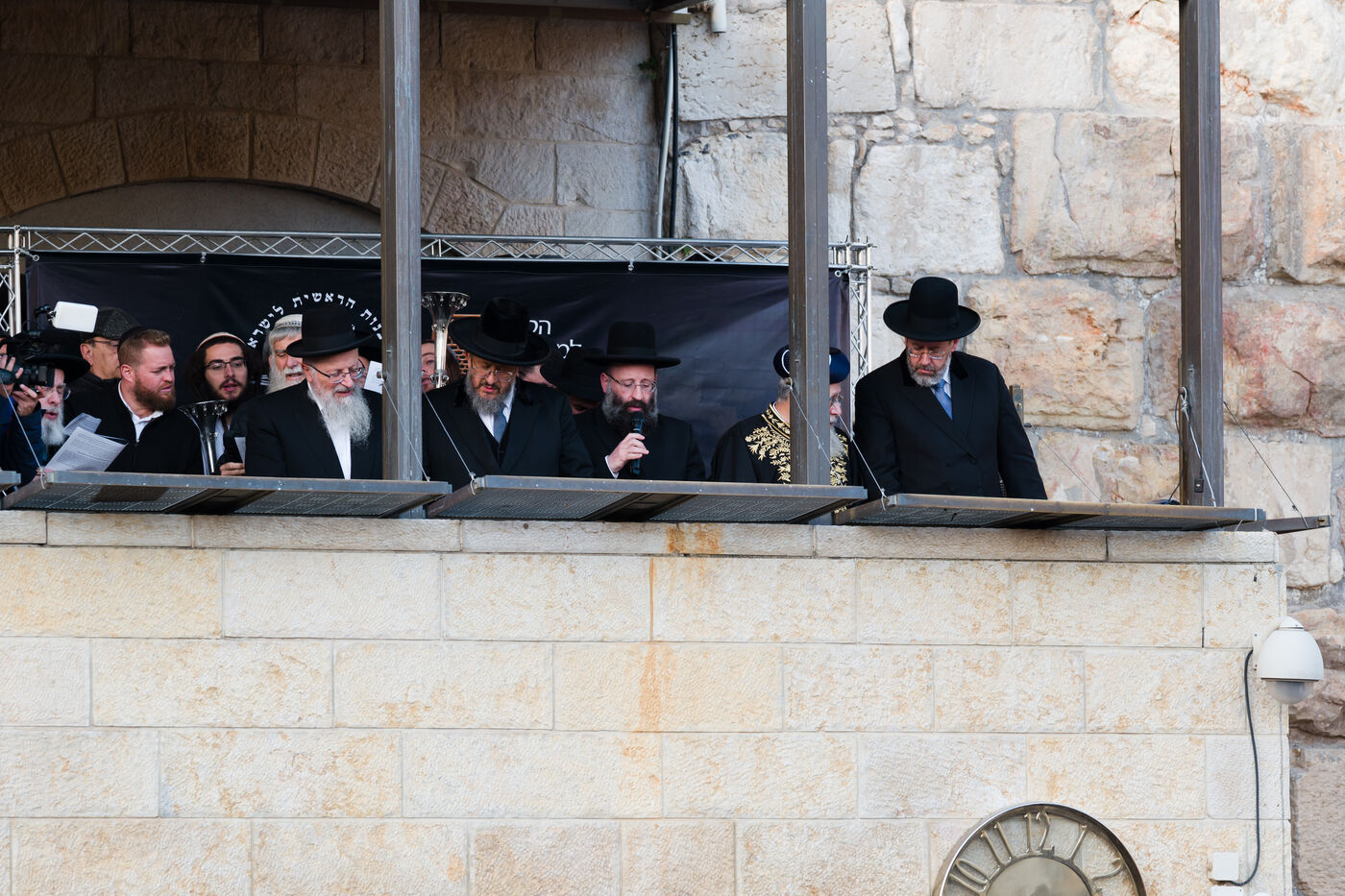 A l appel des Grands rabbin d Israel et des rabbins, une priere commune est organisee au Mur des Lamentations en soutien a la situation que vivent les citoyens israeliens.