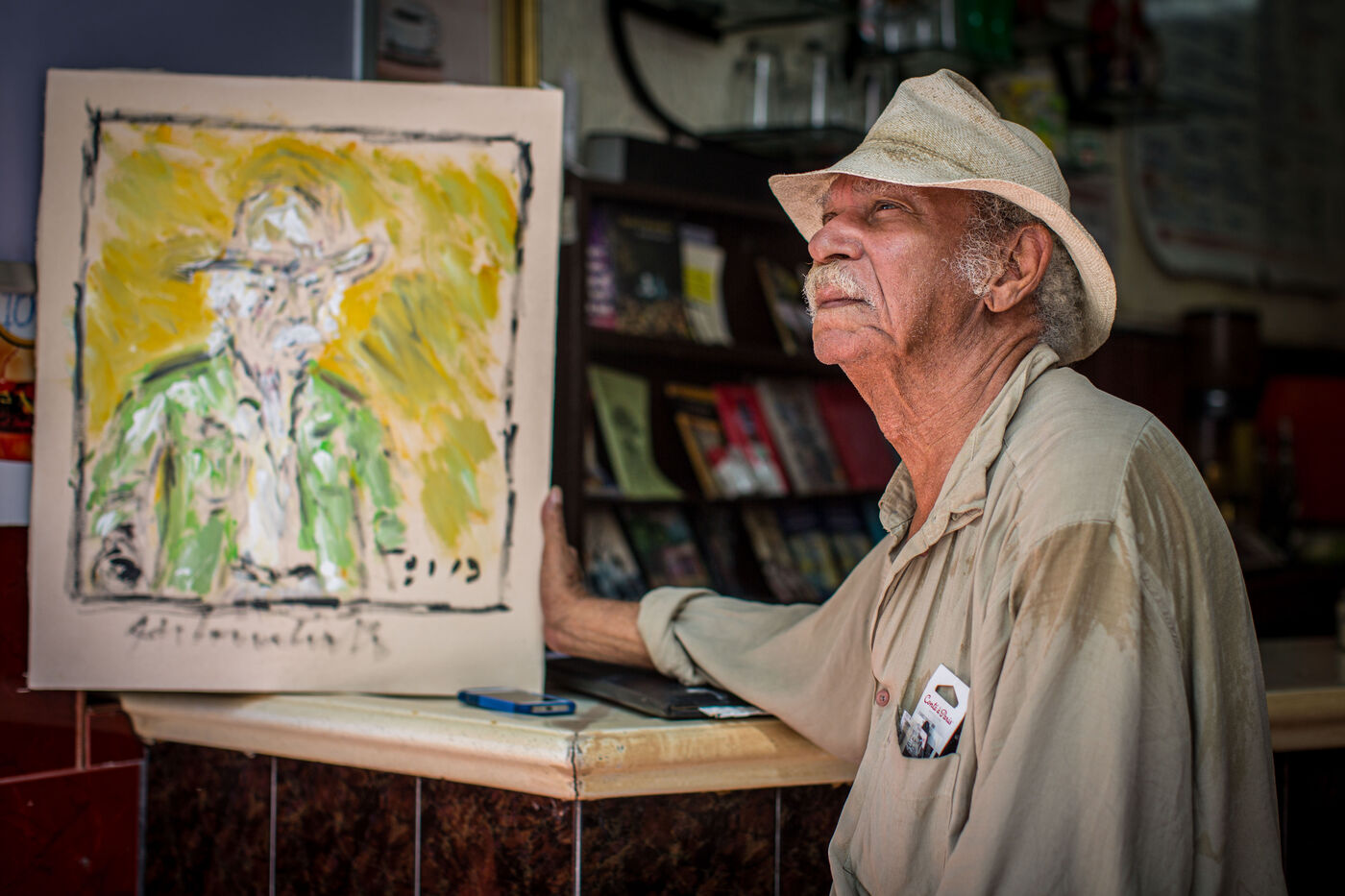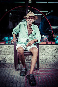 In 2016, by meeting the iconic painter Jose Cestero in his hometown on Calle El Conde in Santo Domingo in the Dominican Republic, I was able to take some portraits of the character. Unfortunately, on my return to France, through poor handling, I had erased the images from my box. Since then, every time I pass through the Dominican capital, I want to correct this mistake and go back in time. Like a ritual, I don't fail to look for the artist in places where we can usually come across him. When I find it again, like an immutable landmark of the colonial city, we talk for a few moments. Over time, I notice that the eyesight of Jose Cestero, born March 19, 1937, continues to decline. Perhaps she is now even in tune with his vibrant neo-impressionist painting. Will I see him again next time?