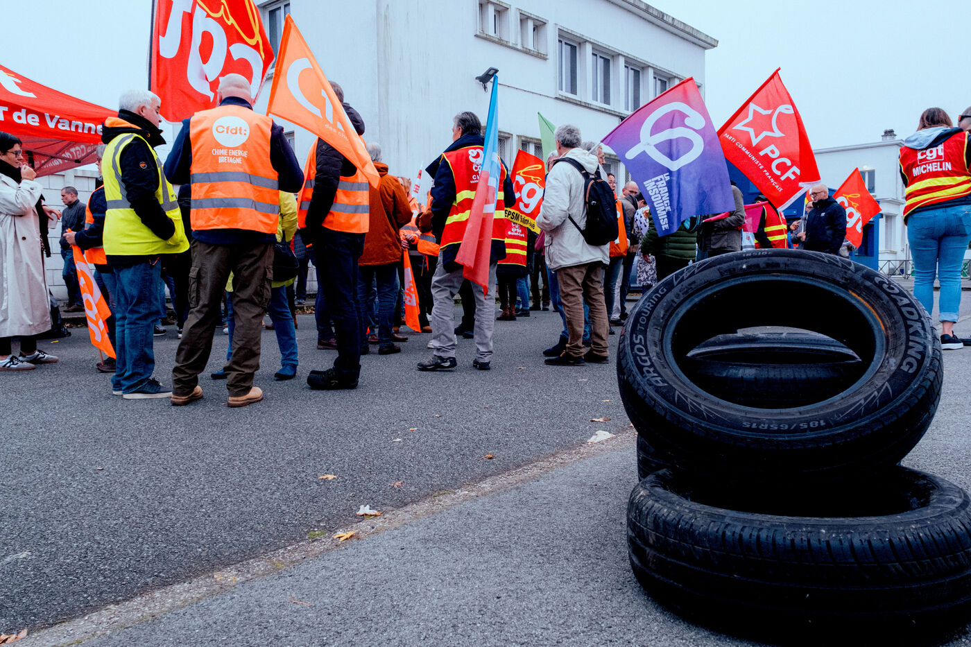 On Tuesday 5 November 2024, the management of Michelin announced the closure of its Vannes site, which employs 300 people. The Michelin plant in Vannes manufactures metal rods used to reinforce HGV tyres. On 8 November 2024, a roadblock was set up at the Liziec roundabout at 6 a.m. to alert local residents, before joining the politicians who had come to support the workers at around 9.30 a.m., including Clémentine Autain, Lucie Castets and Sophie Binet.
