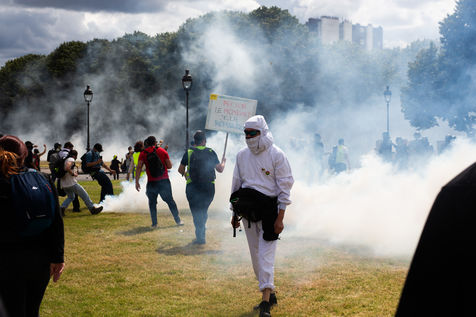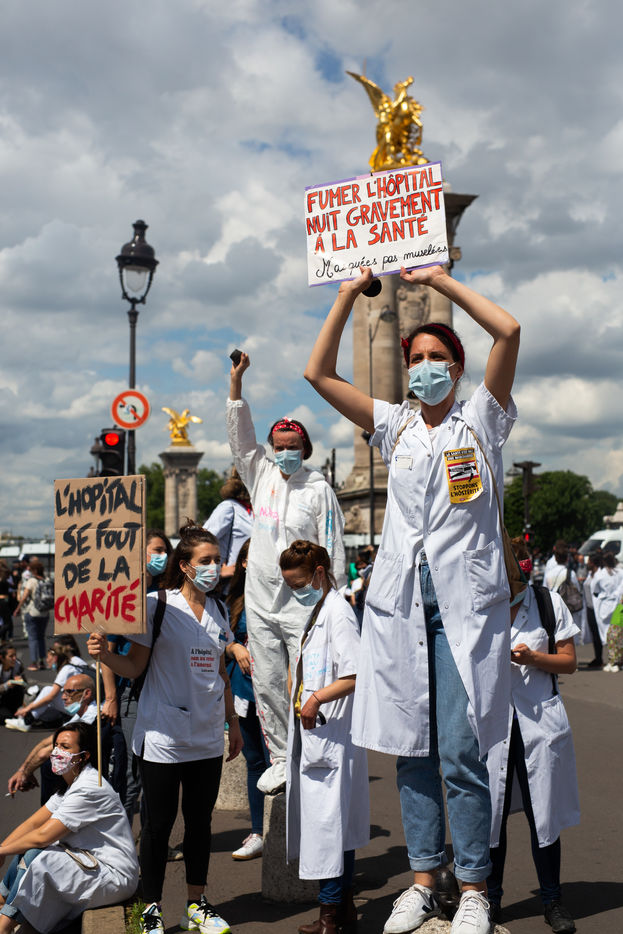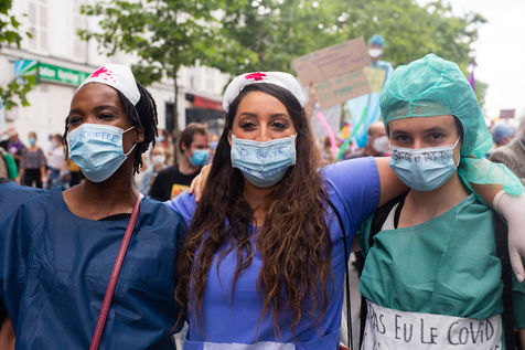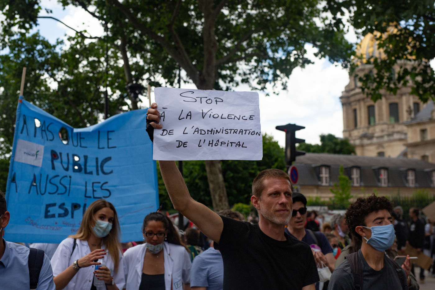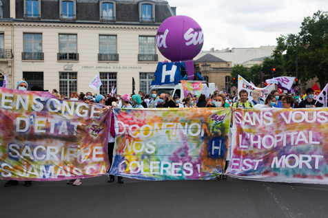 A demonstration grouping together several unions and associations took place in Paris in front of the Ministry of Health to continue on Military School before being blocked at Invalide.