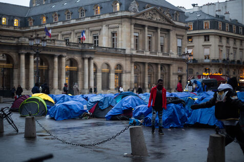"Alongside associations, more than 200 homeless teenagers peacefully set up camp in front of the Council of State on Friday, December 2, 2022,