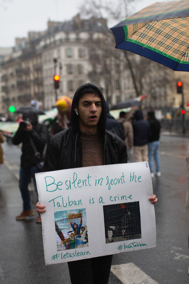 A hundred demonstrators gathered to protest against the Taliban regime which prevents women from working and having access to education in Afghanistan.