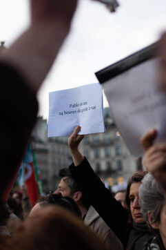 Several hundred people gathered on the Place de l'Hotel de Ville to support Earth Rising and to denounce the police violence a few days after the demonstration against mega basins and the speech of Gerar Darmanin calling for the dissolution of the movement Earth Rising.