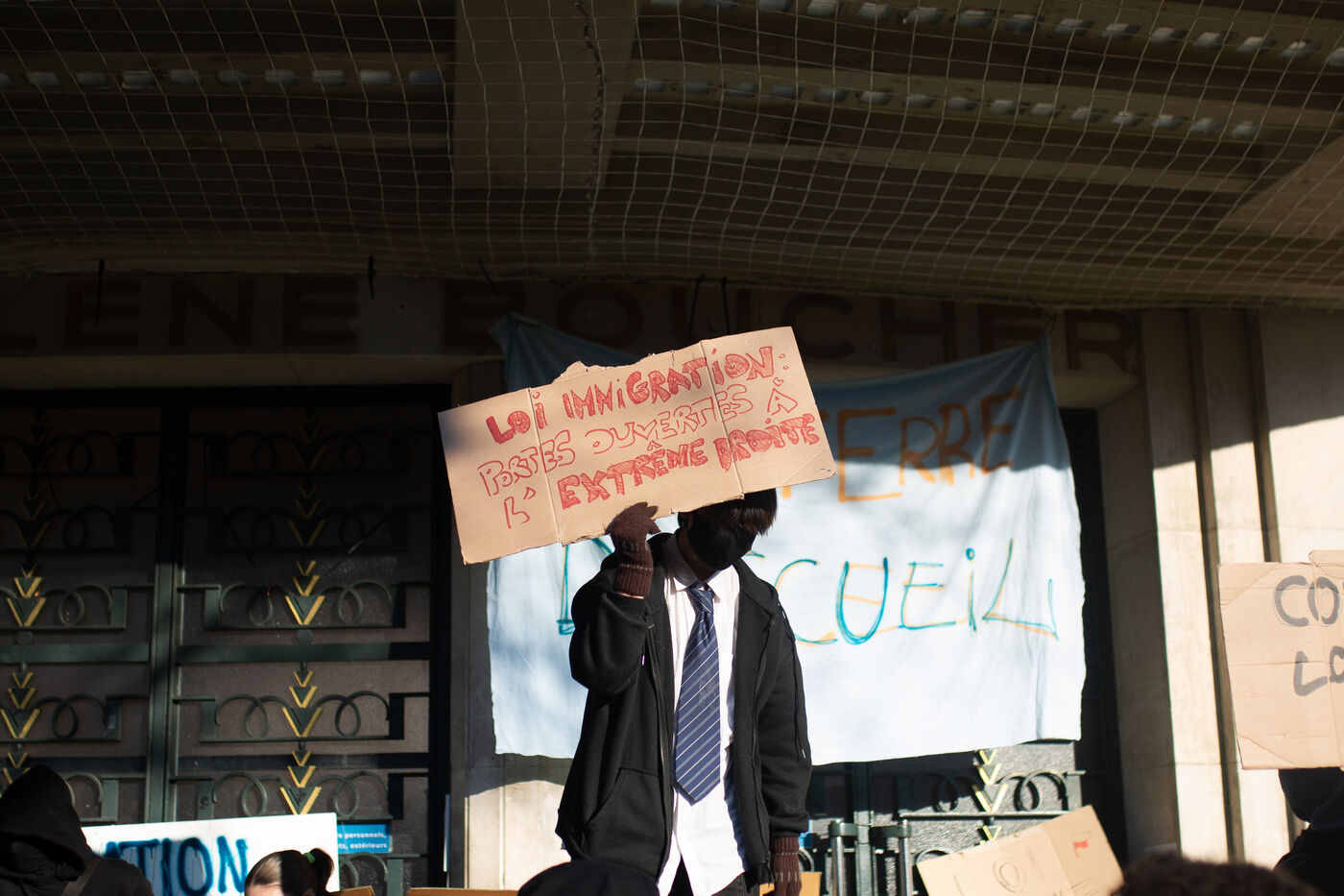 High school students from the Lycée Helene Boucher blockaded their school to denounce the new immigration law promoted by the majority and the extreme right, as well as the SNU and the arrival in power of the new Prime Minister Gabriel Attal.