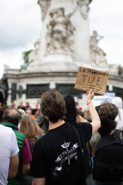 Several hundred demonstrators gathered at Place de la Republique to defend the rights of trans people and combat transphobic discourse in society,