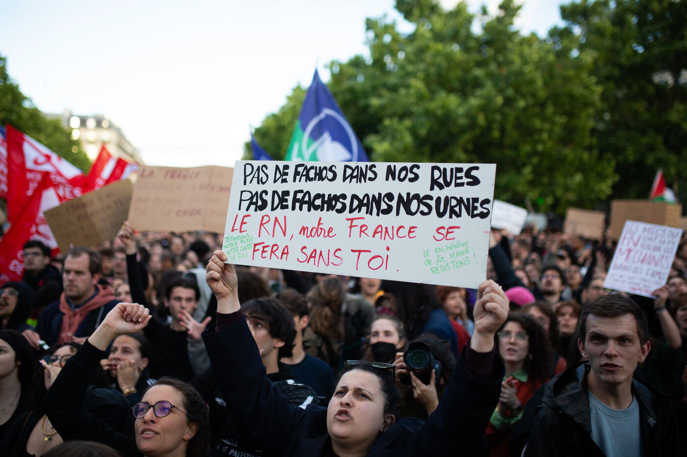 Depuis les éléctions Européénes (plus de 30 pour cent pour le parti d'extrême droite Rassemblement Nationale) et la décision de dissolution de l'Assemblée Nationale d'Emmanuel Macron , des manifestations ont lieux chaques soirs sur la Place de la République,