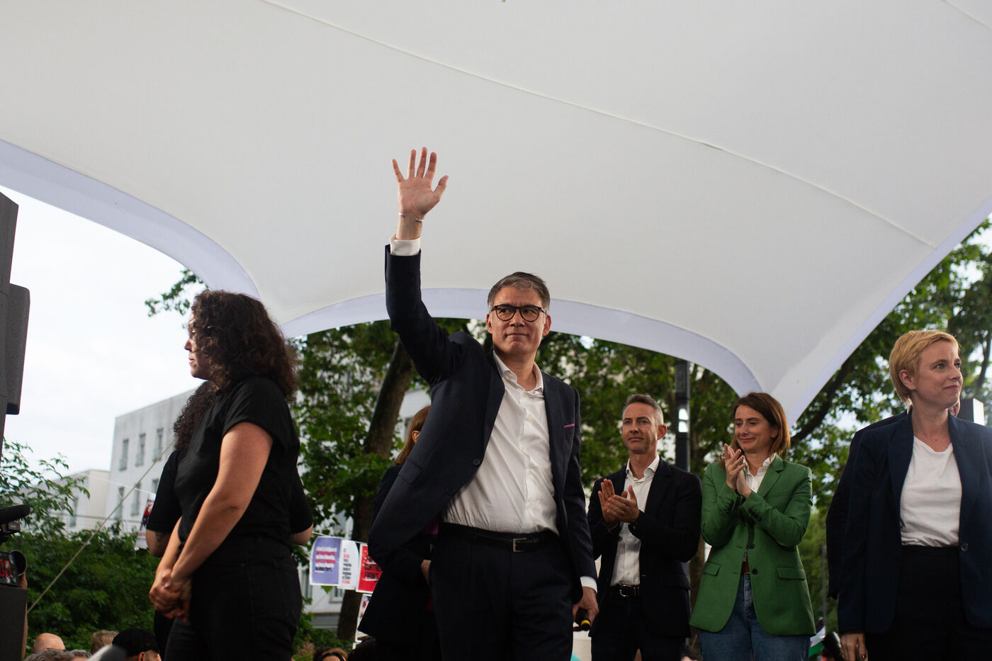Des centaines de personnes se sont rassemblés pour assister au rassemblement du Nouveau Front Populaire à Montreuil,