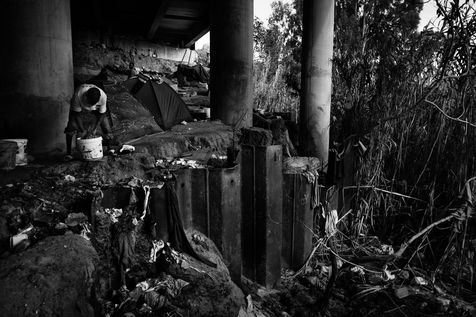 A 15 kilomètres à l'est d'Alger, cela fait déjà des mois qu'ils se sont réfugiés là, sous ce pont protecteur. Dessous, tout près d'eux passe le train grondant et criant. La fumée des détritus brulés et des feu de cuisine, la poussière omniprésente, emplissent l'air d'une odeur âcre et nauséabonde.