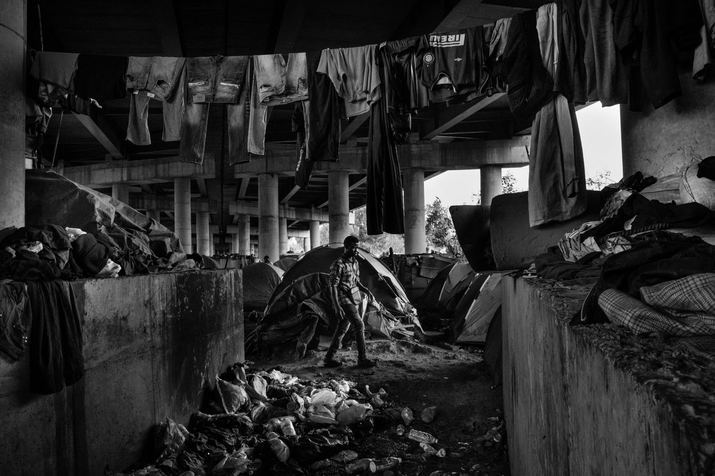 Parfois aidés, parfois repoussés, ou même insultés par leur pays d'accueil, reconduits manu militari aux frontières pour certains, ils se retrouvent là dans ce petit village improvisé, presque caché. Loin des yeux et des regards de la population, ils y ont leurs tentes, leurs mosquées improvisées, des restaurants, des boutiques et des marchands ambulants.