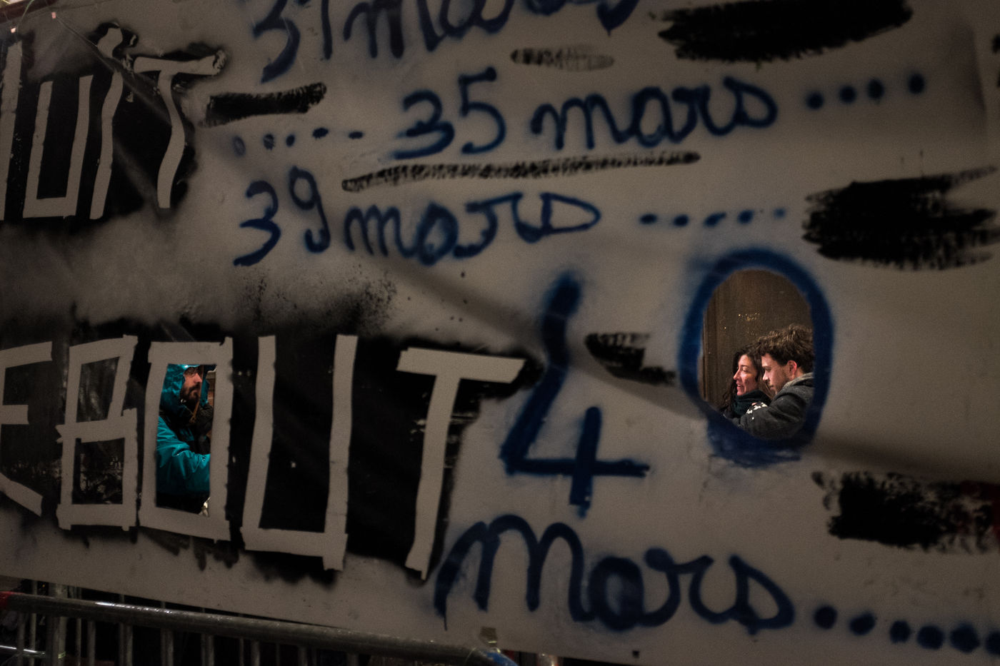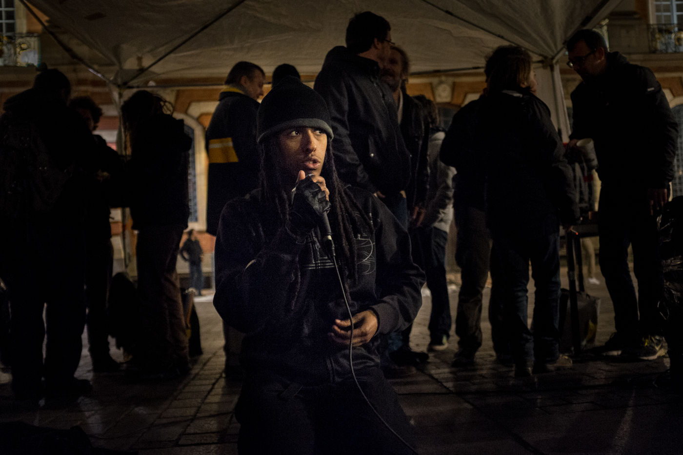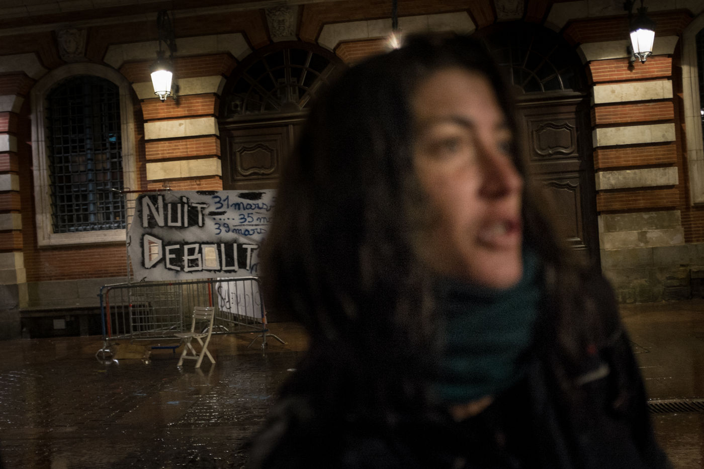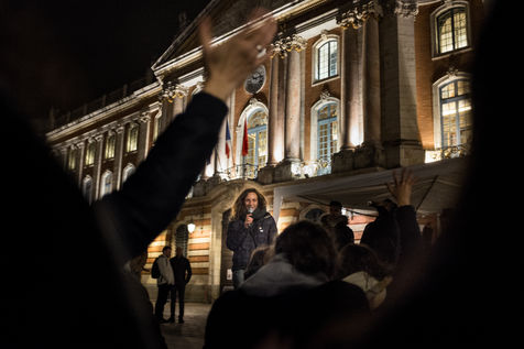 Étudiants, intermittents, SDF, professeurs ou ingénieurs se sont réunis vendredi soir à Toulouse pour une deuxième "Nuit debout", dans le sillage du mouvement lancé à Paris le 31 mars. Au pied du Capitole , des pancartes clament le nom et la date de ce mouvement spontané : "Nuit debout", "inventer la société de demain", "39 mars" selon leur nouveau calendrier.
