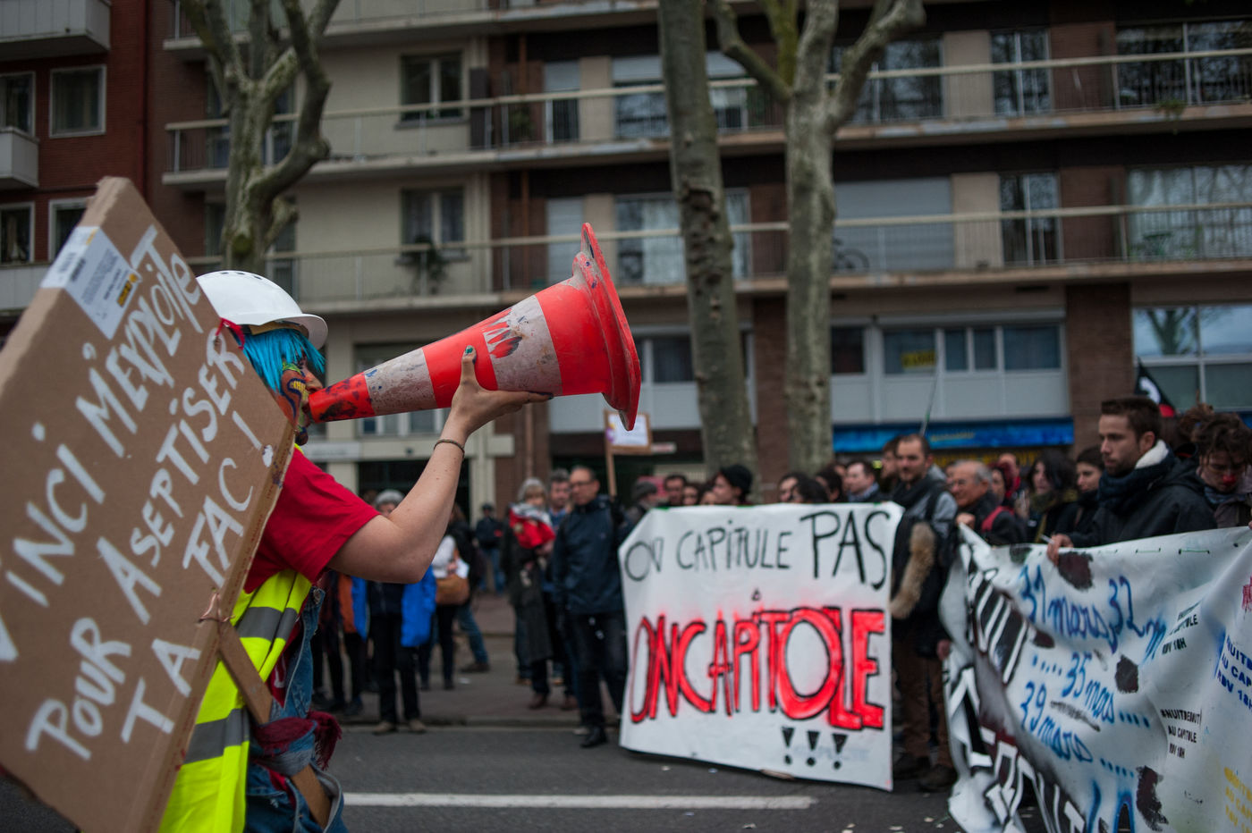 Samedi 9 avril, la manifestation contre la loi Travail a rassemblé entre 8000 et 20 000 personnes dans les rues de Toulouse. Déroulement sans affrontements avec la police. Finalement, la manifestation se terminera par l'envahissement du theatre national de Toulouse ( TNT).