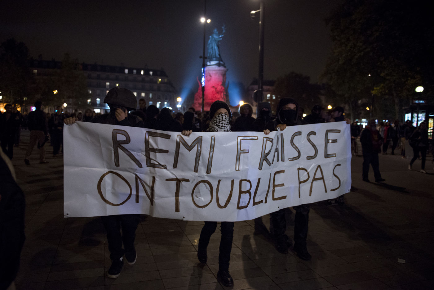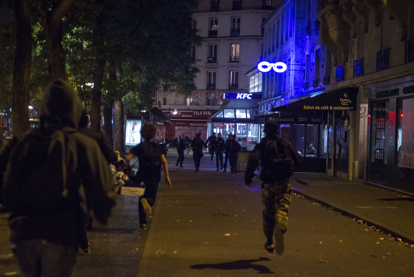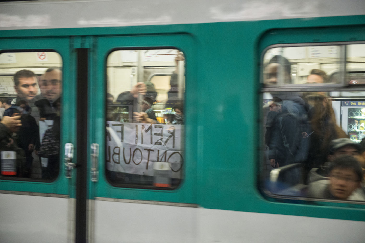 Following the rally in Republic in tribute to Remi Fraisse - environmental activist killed by injuries due to an explosion of a grenade shot by a gendarme during clashes on the site of Sivens in October 2014 - a wild event leaves in the subway for go to Rambuteau, then Rue Saint-Maur, and end with a clash with a police patrol in Ménilmontant who will take refuge in a KFC.