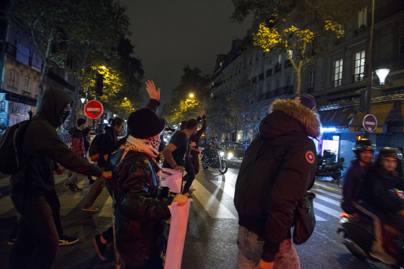 Suite au rassemblement à République en hommage à Remi Fraisse - militant écologiste tué par les blessures due à une explosion d'une grenade tirée par un gendarme lors d'affrontements sur le chantier de Sivens en octobre 2014 - une manifestation sauvage part dans le métro pour aller à Rambuteau, puis Rue Saint-Maur, et finira par un affrontement avec une patrouille de police à Ménilmontant qui se réfugira dans un KFC.