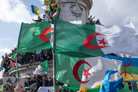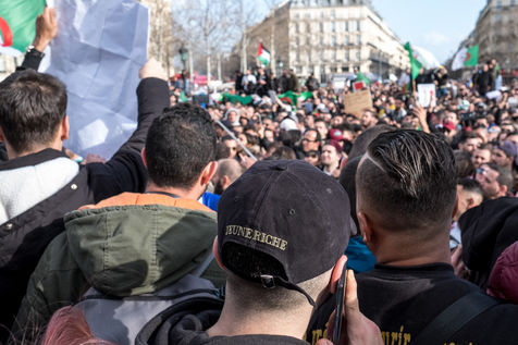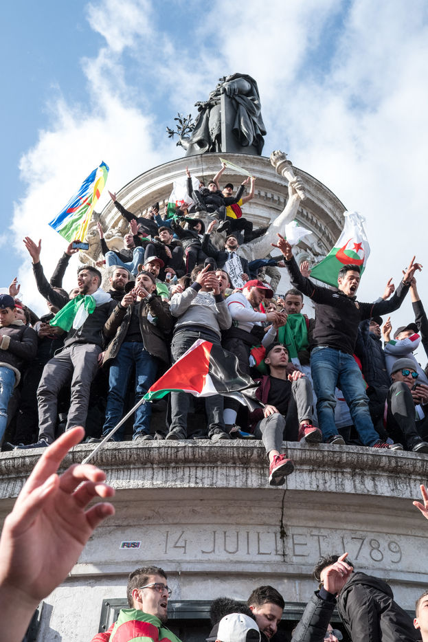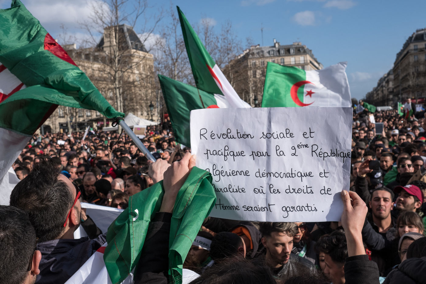 Rally in support of the popular movement in Algeria against the fifth term of Algerian President Abdelaziz Bouteflika on the Place de la République in Paris on March 10, 2019.