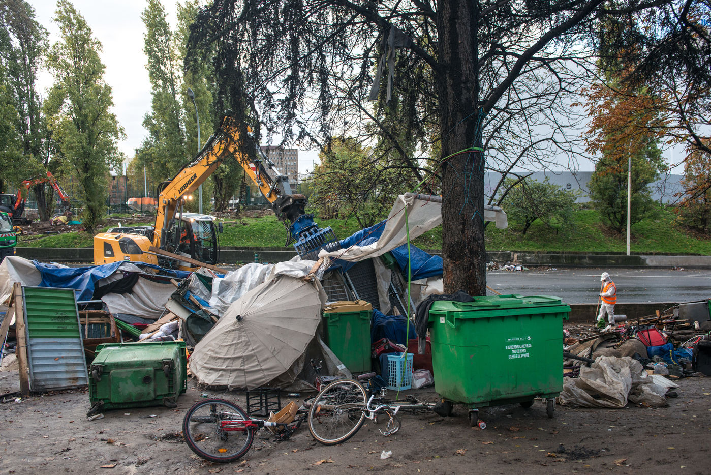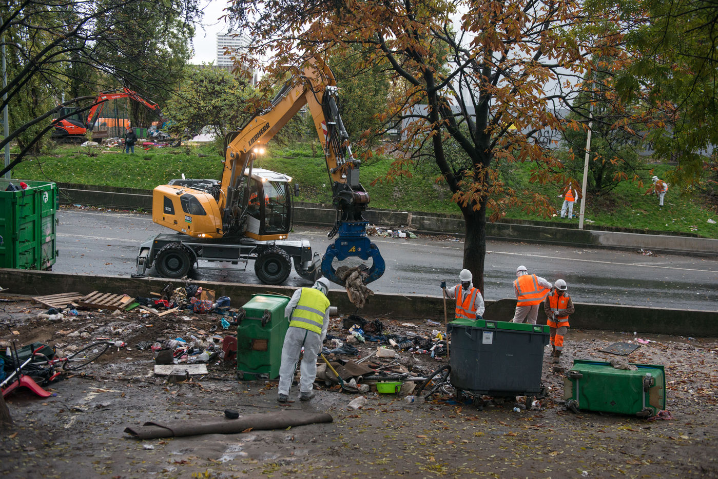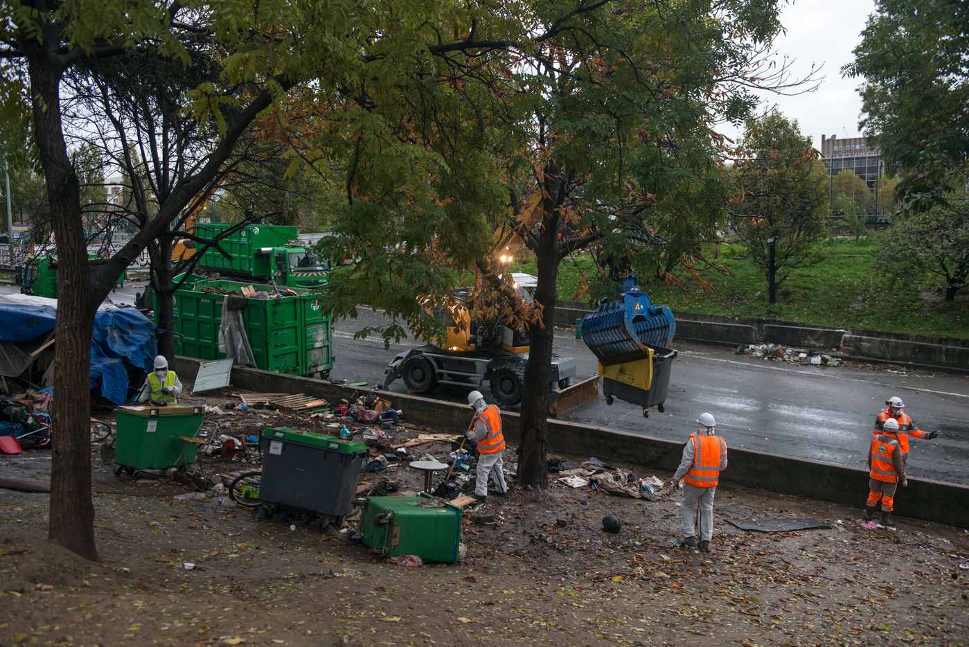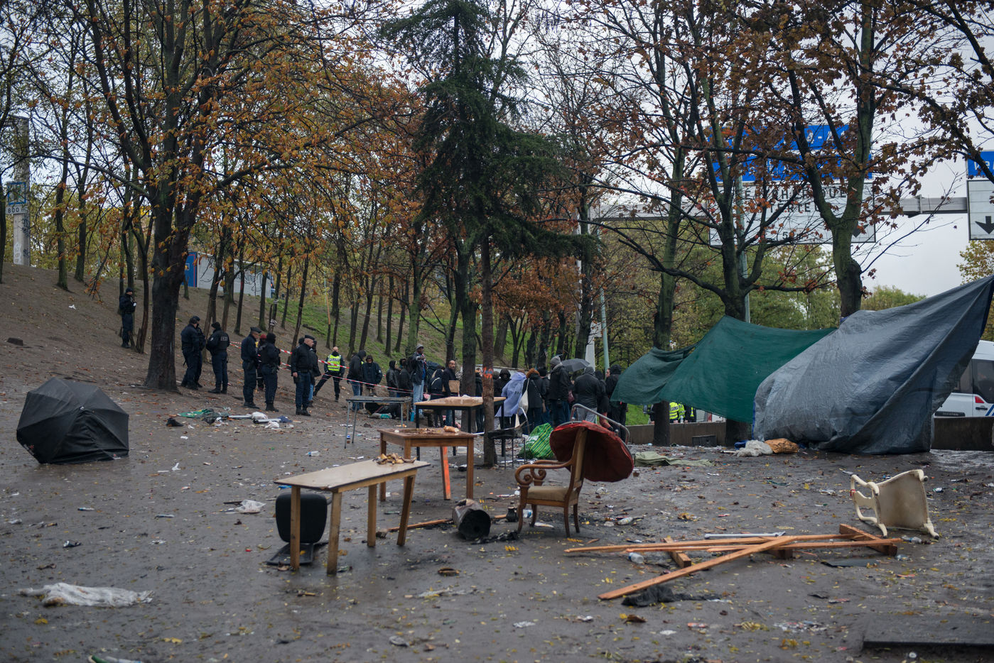 Évacuation du camp de migrants de la porte de la Chapelle et de la Colline, le 7 novembre 2019, Paris, France.