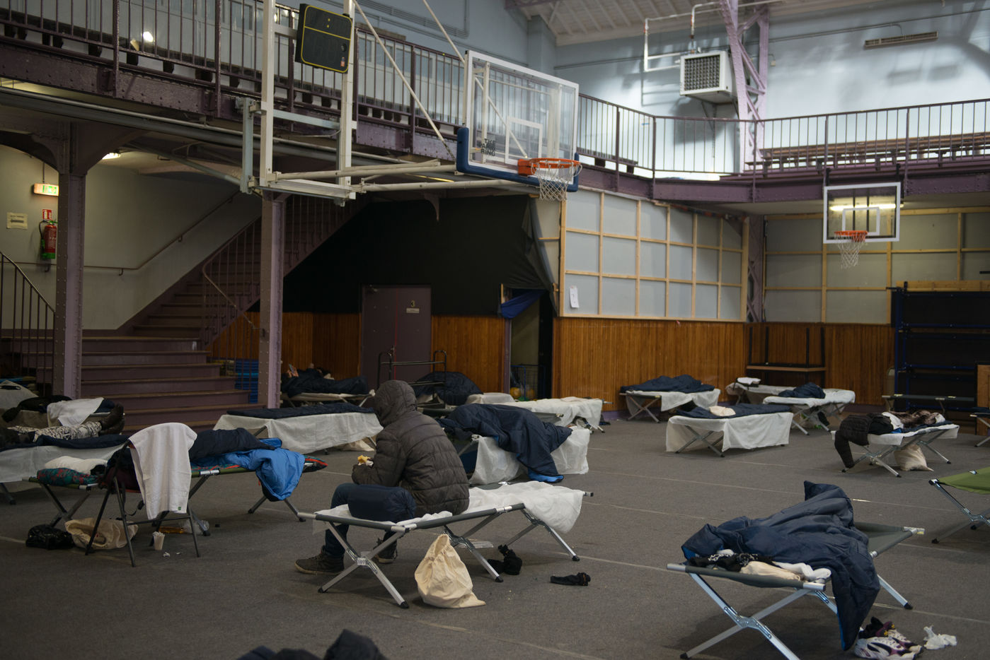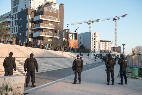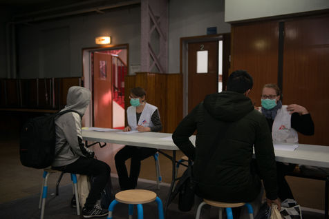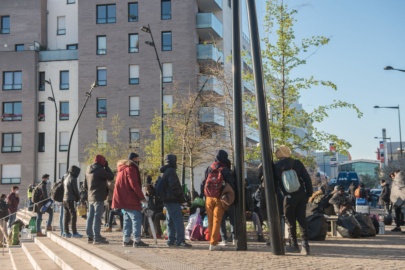 Evacuation of the Aubervilliers migrant camp on March 24, 2020. On the 8th day of confinement in France during the coronavirus pandemic, the prefecture evacuates the makeshift camp where more than 500 people were sleeping in tents.