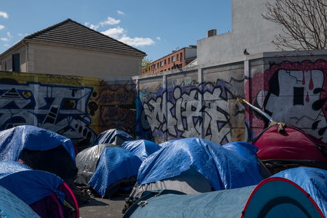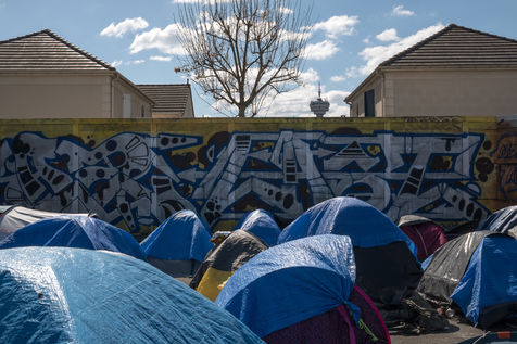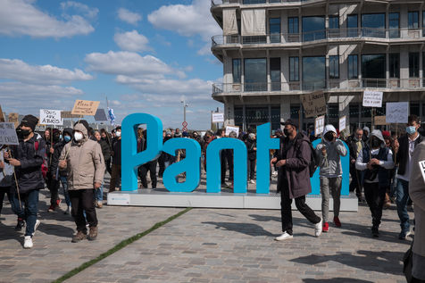 Depuis plusieurs semaines, des exilés afghans vivent sur le campement du cheval noir à Pantin dans l'attente d'une mise à l'abri, ils dorment dans des tentes. Le 3 avril 2022, une manifestation pour un accueil inconditionnel et égal de tous les exilés, organisée par le collectif Pantin Solidaire et d'autres associations humanitaires, a défilé sur le canal.