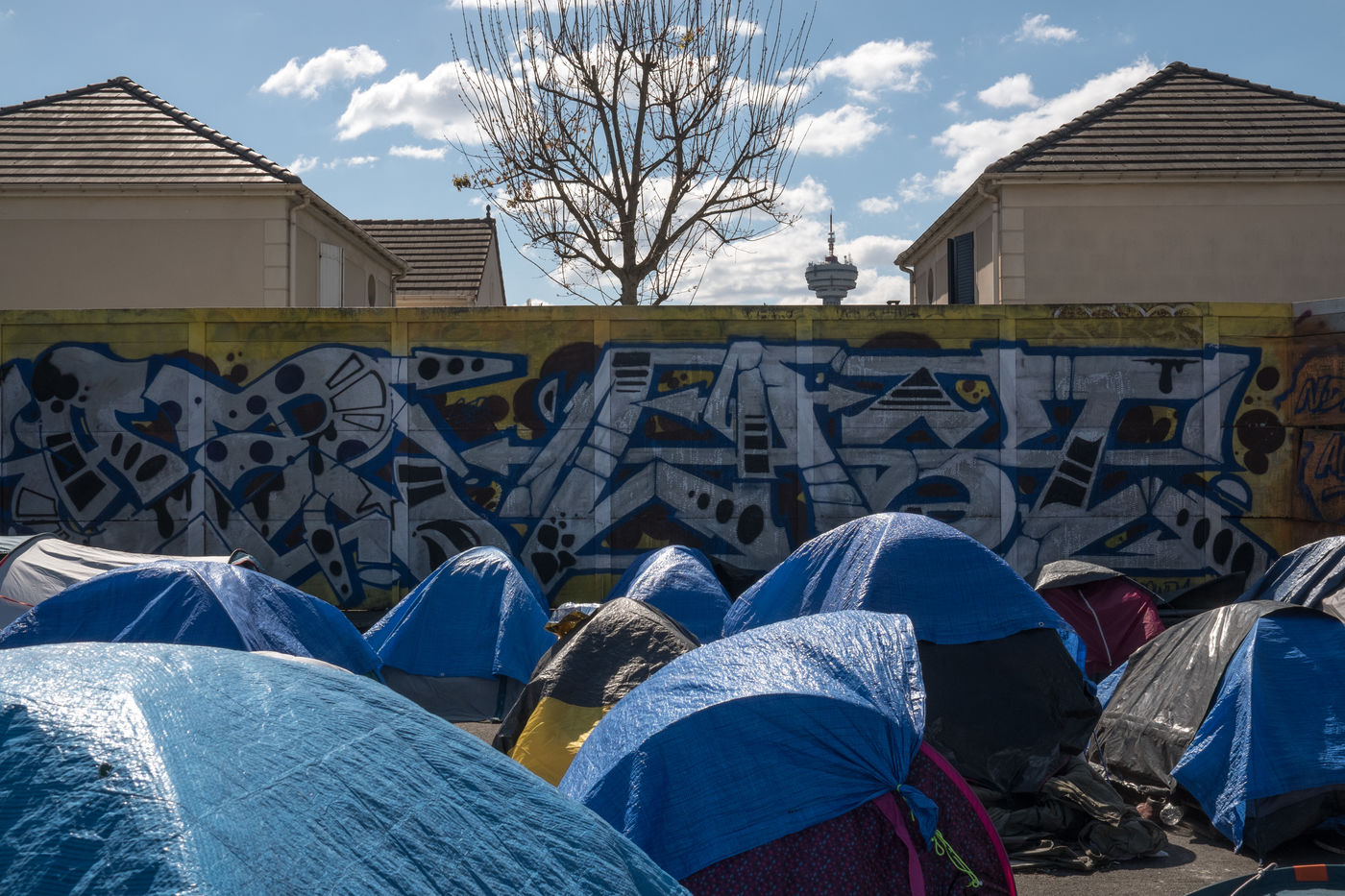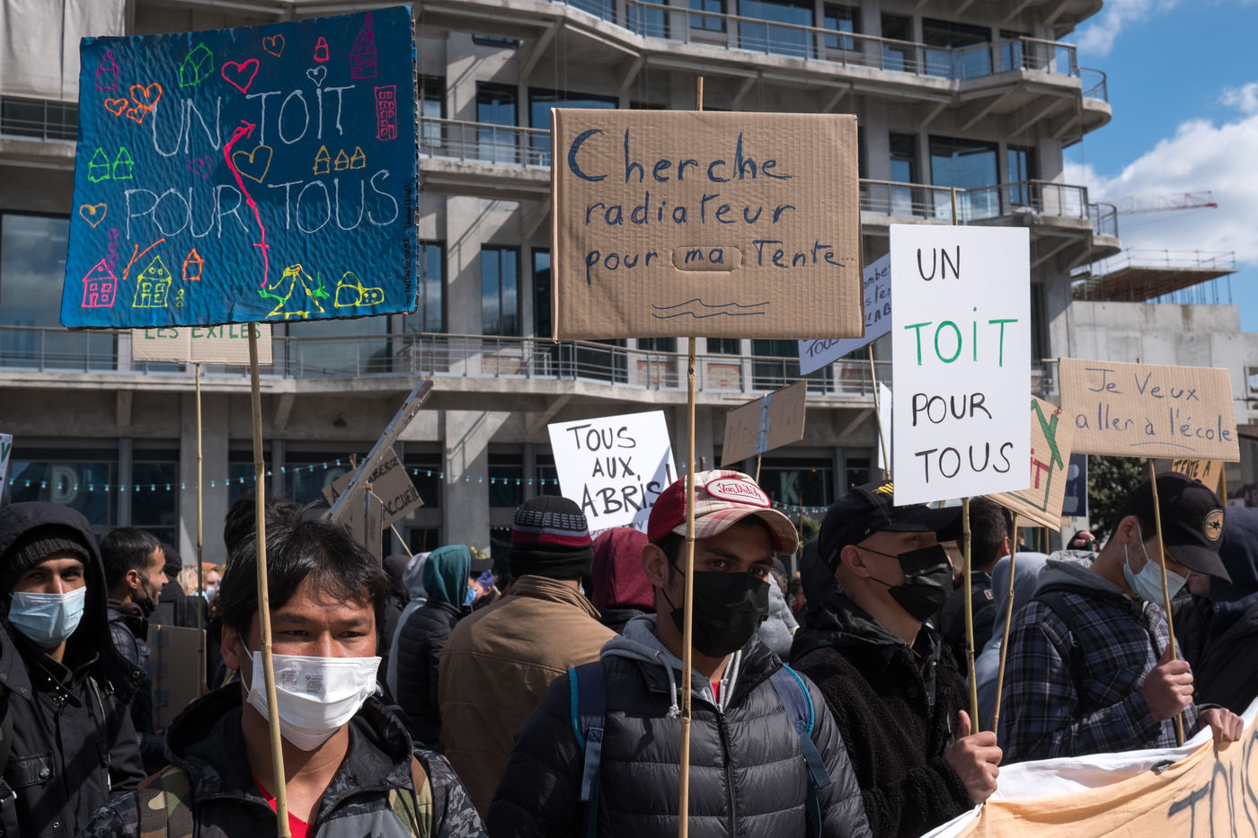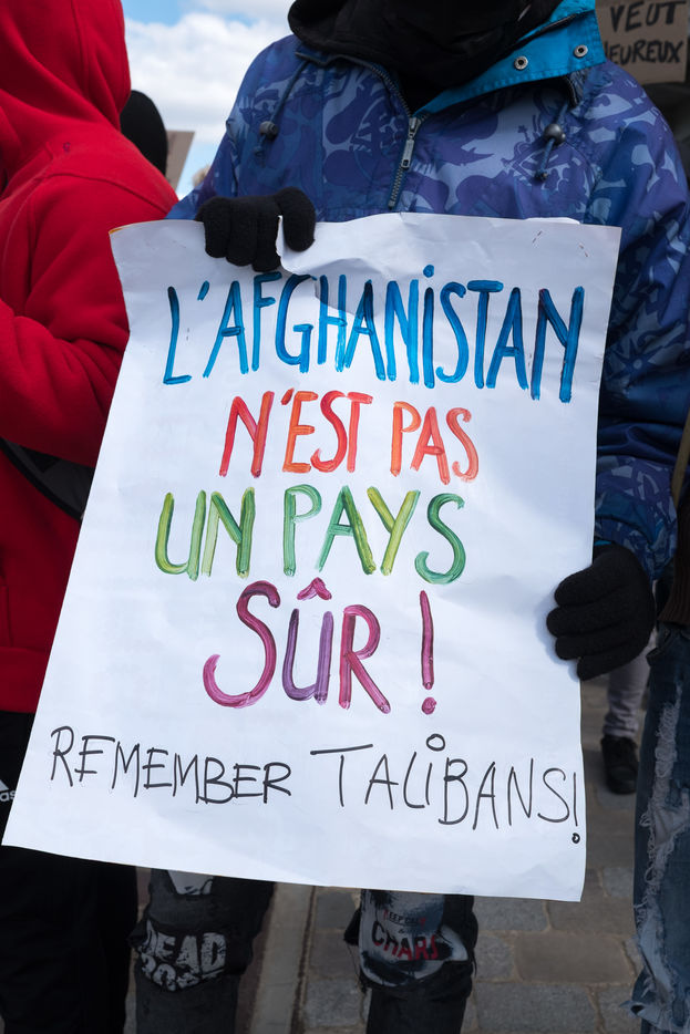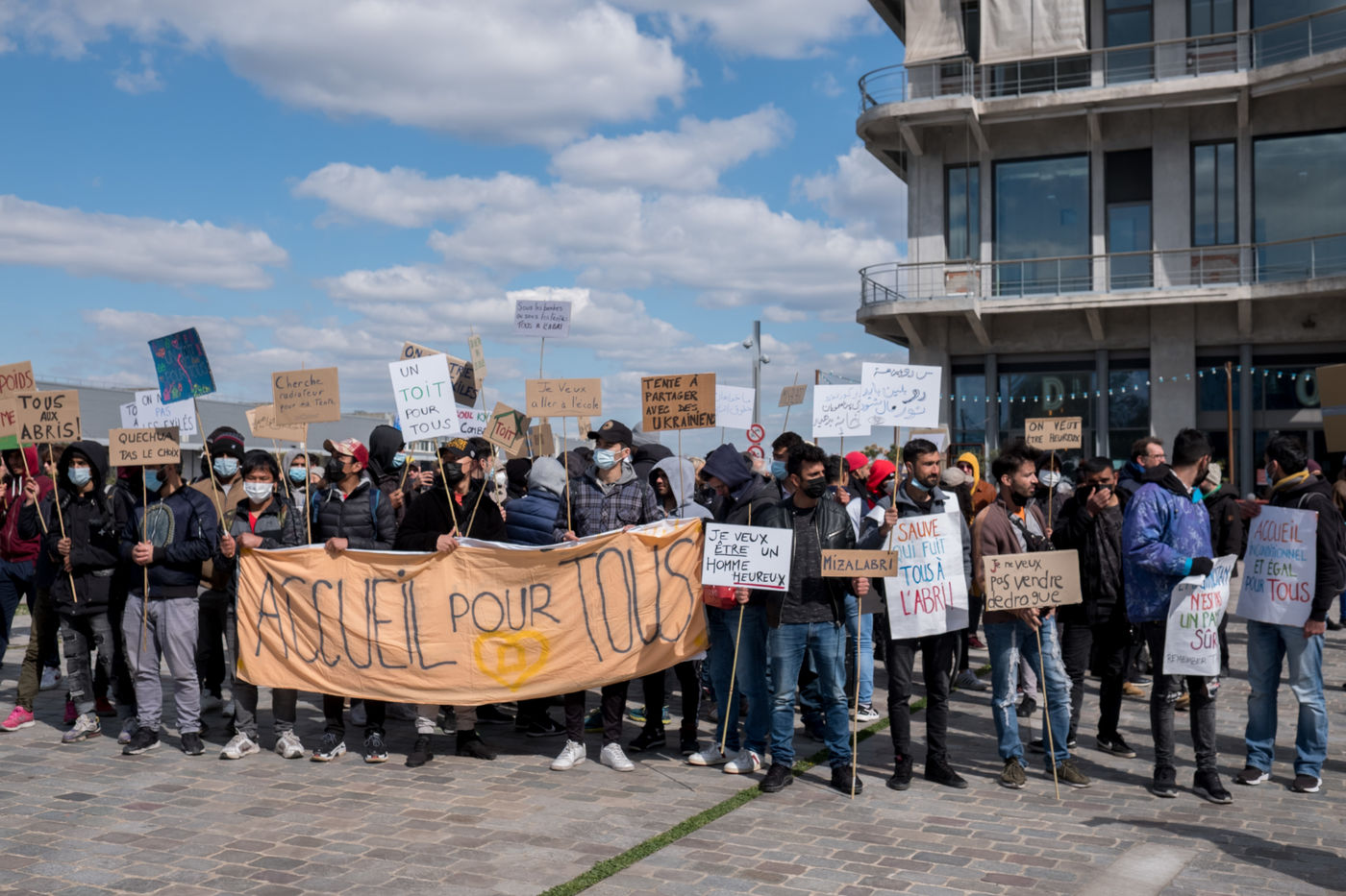 For several weeks, Afghan exiles have been living in the Black Horse camp in Pantin while waiting for shelter, sleeping in tents. On 3 April 2022, a demonstration for an unconditional and equal reception of all exiles, organised by the Pantin Solidaire collective and other humanitarian associations, marched along the canal.