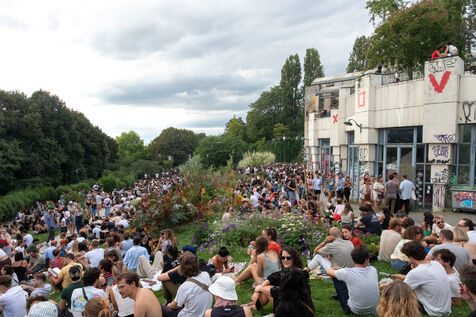 Giant Open Air Festival with house, minimal and disco DJ-set hits from Parisian collectives Toilettes Mixtes & Cookies Records, at the Belleville Park amphitheatre, on the afternoon of 2 September 2023 in Paris.