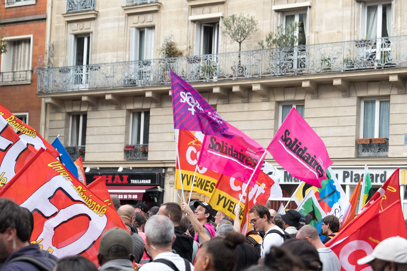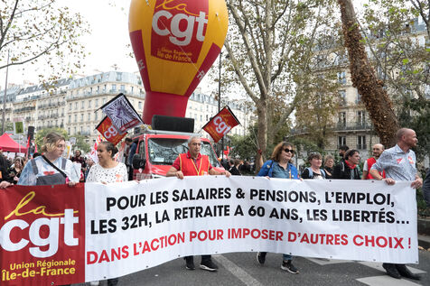 France, Paris, 2023-10-13. Cross-industry demonstration for higher wages, gender equality and pension reform. Strike day.