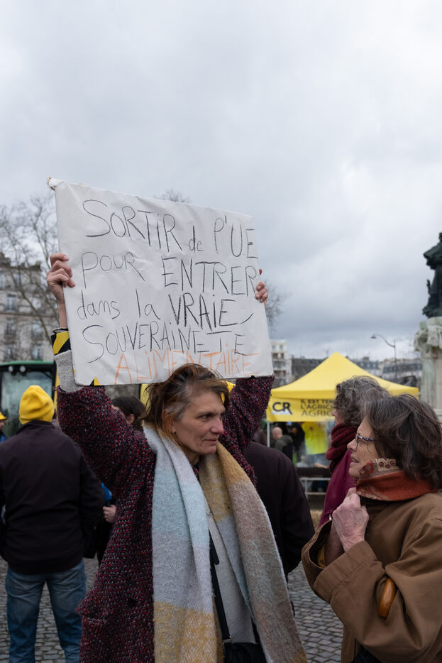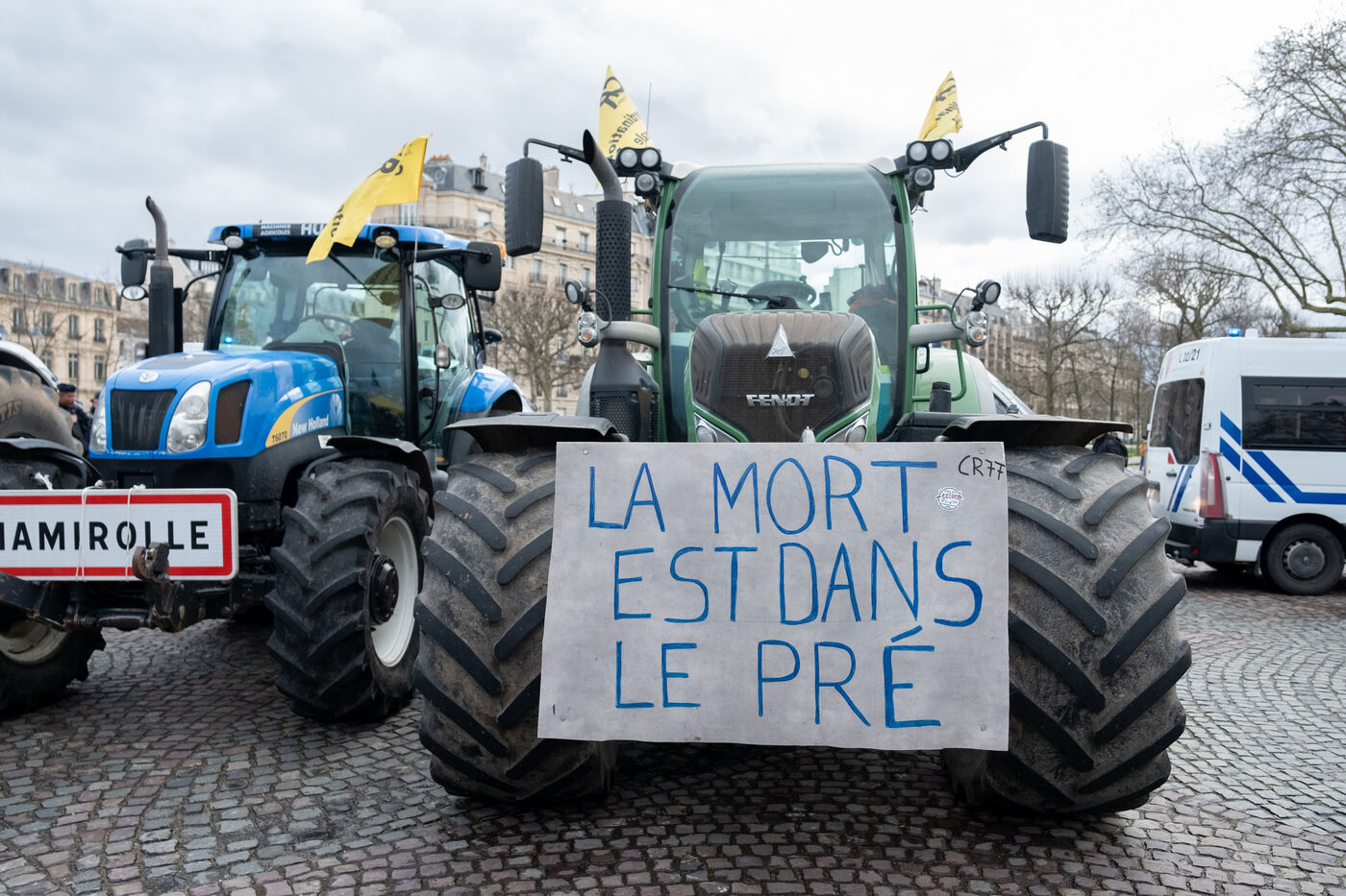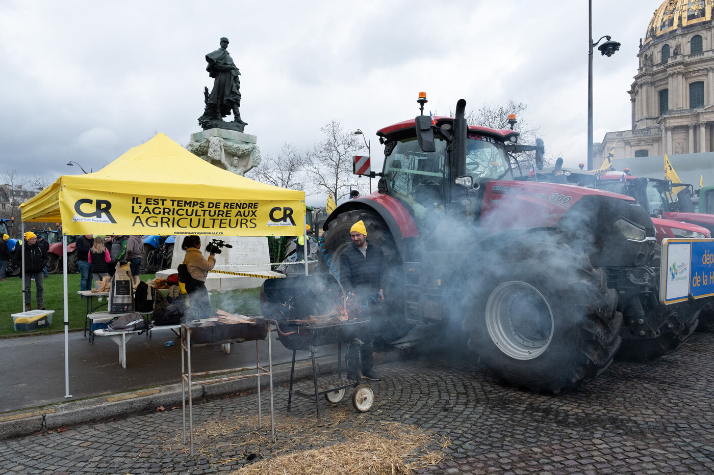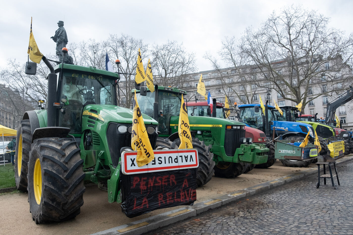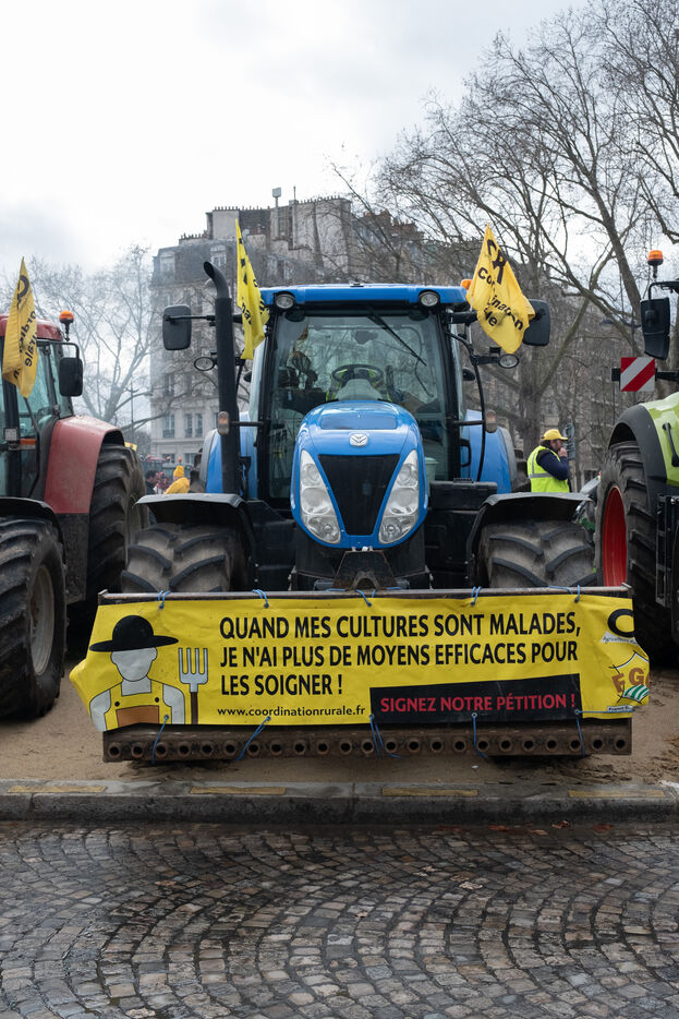 Manifestation des agriculteurs de la coordination rurale sur la place Vauban à Paris le 23 février 2024, à la veille du salon de l'agriculture.