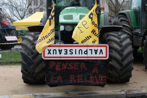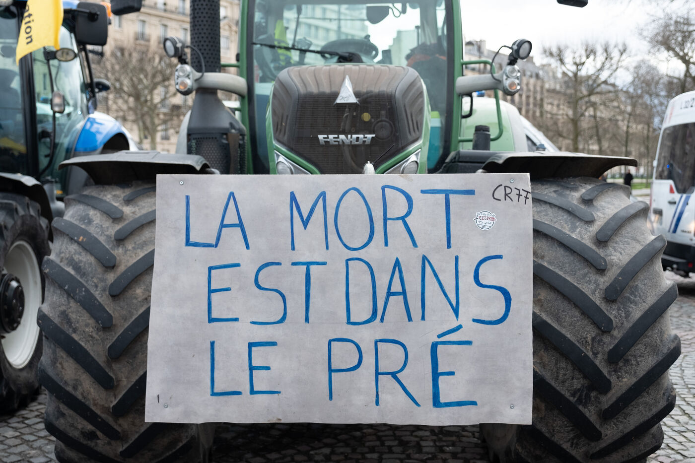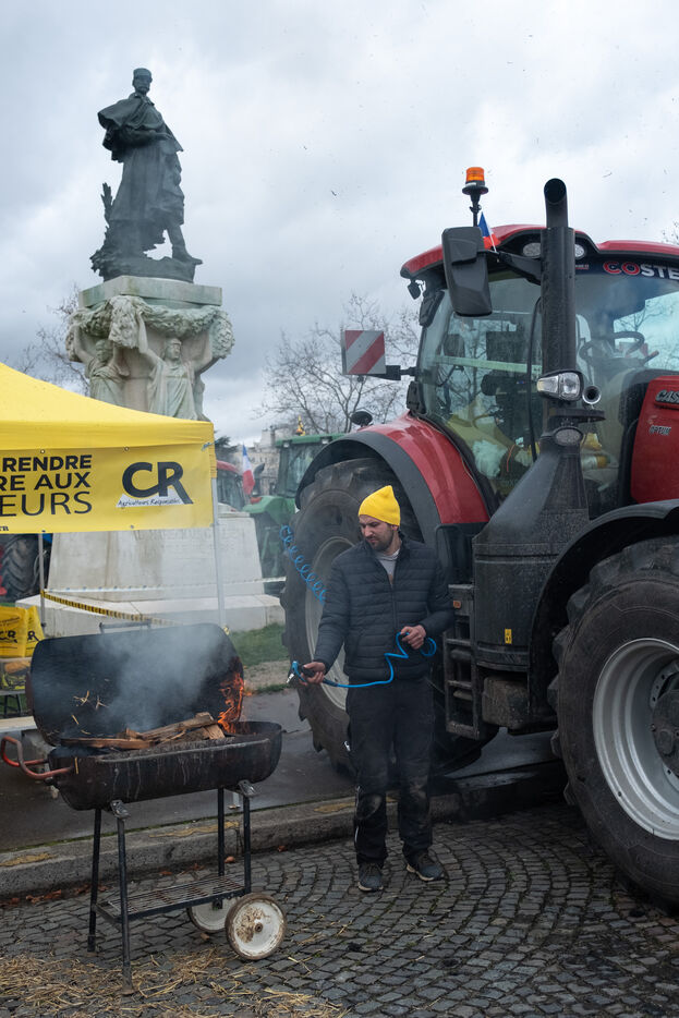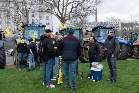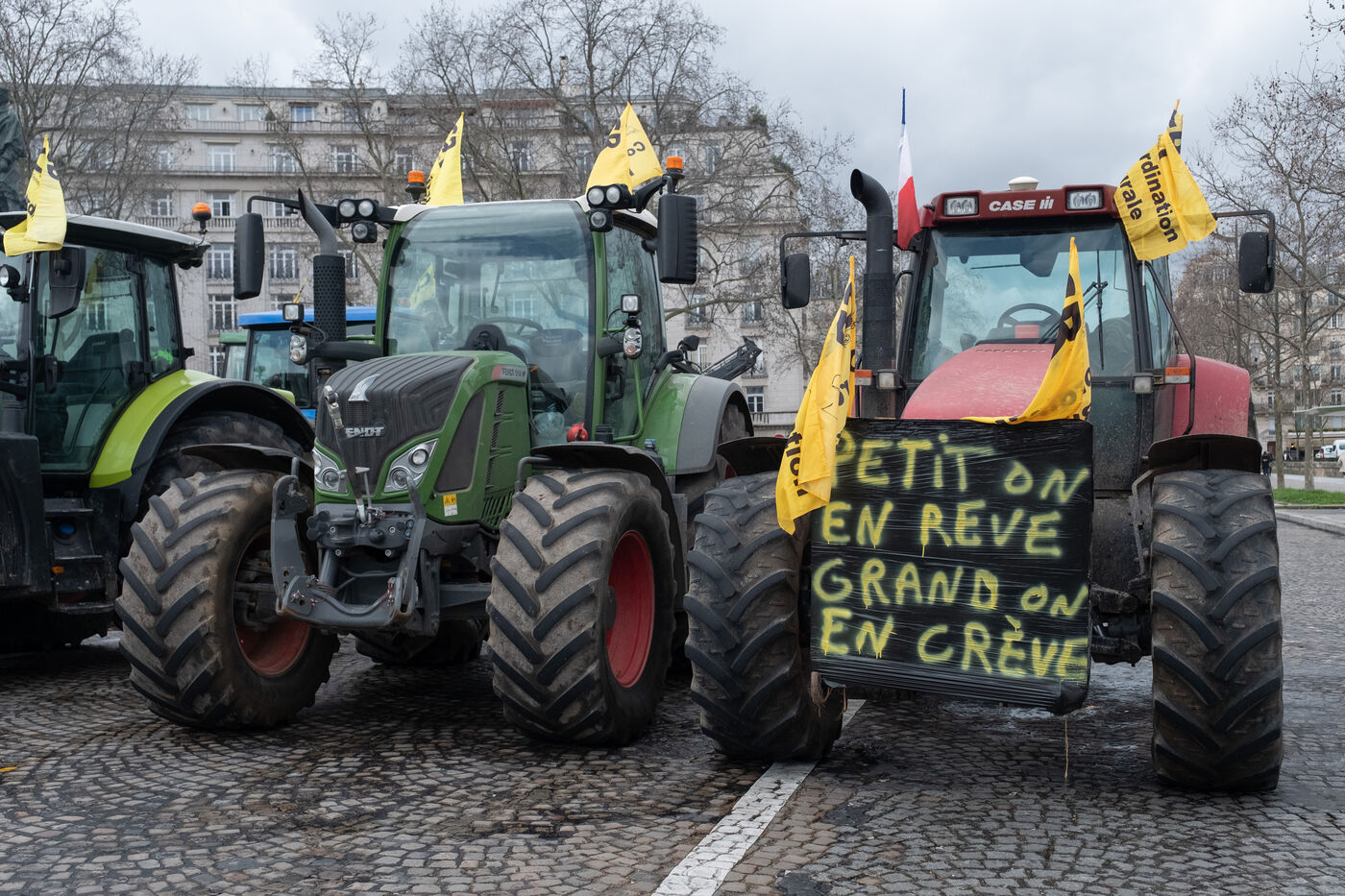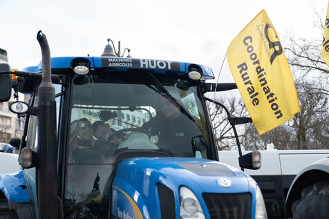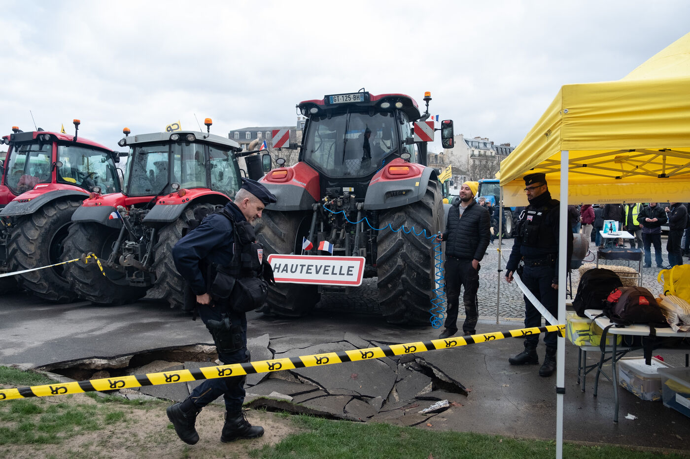 Manifestation des agriculteurs de la coordination rurale sur la place Vauban à Paris le 23 février 2024, à la veille du salon de l'agriculture.