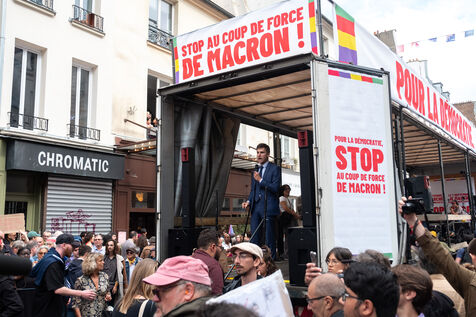Demonstration for democracy and against Macron's policies after the election of Michel Barnier as prime minister. The call for mobilization was launched by La France Insoumise (LFI), and the youth unions the Student Union and the High School Union (USL).