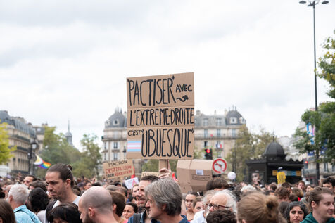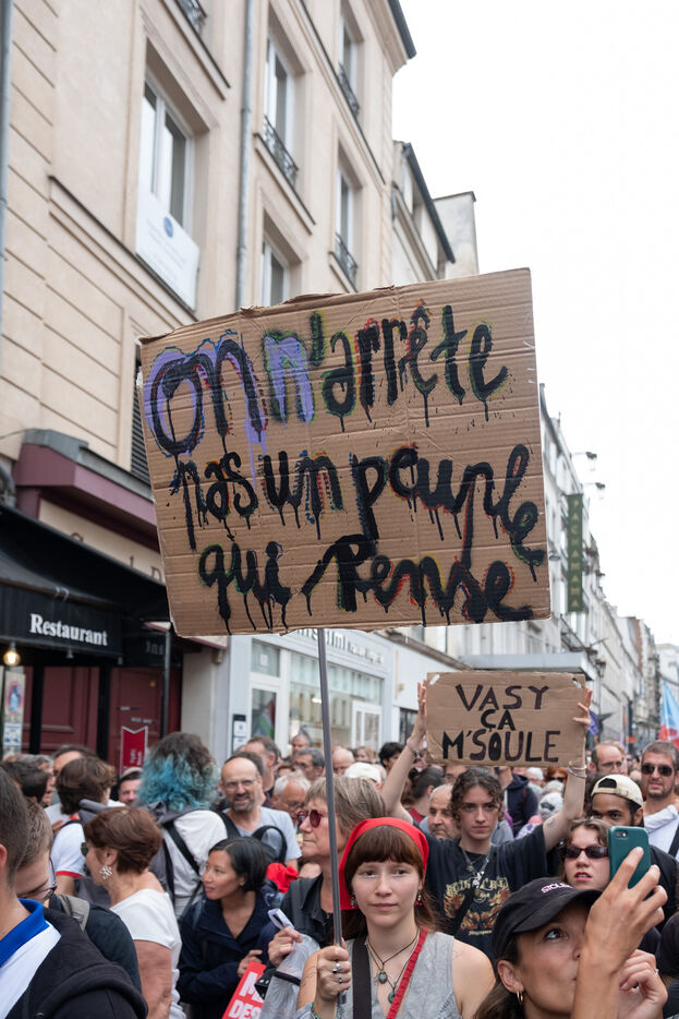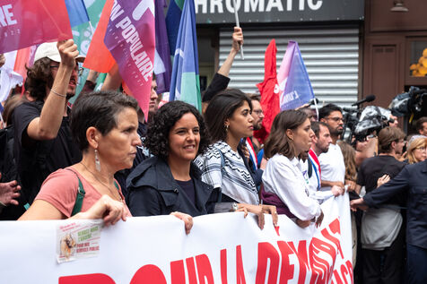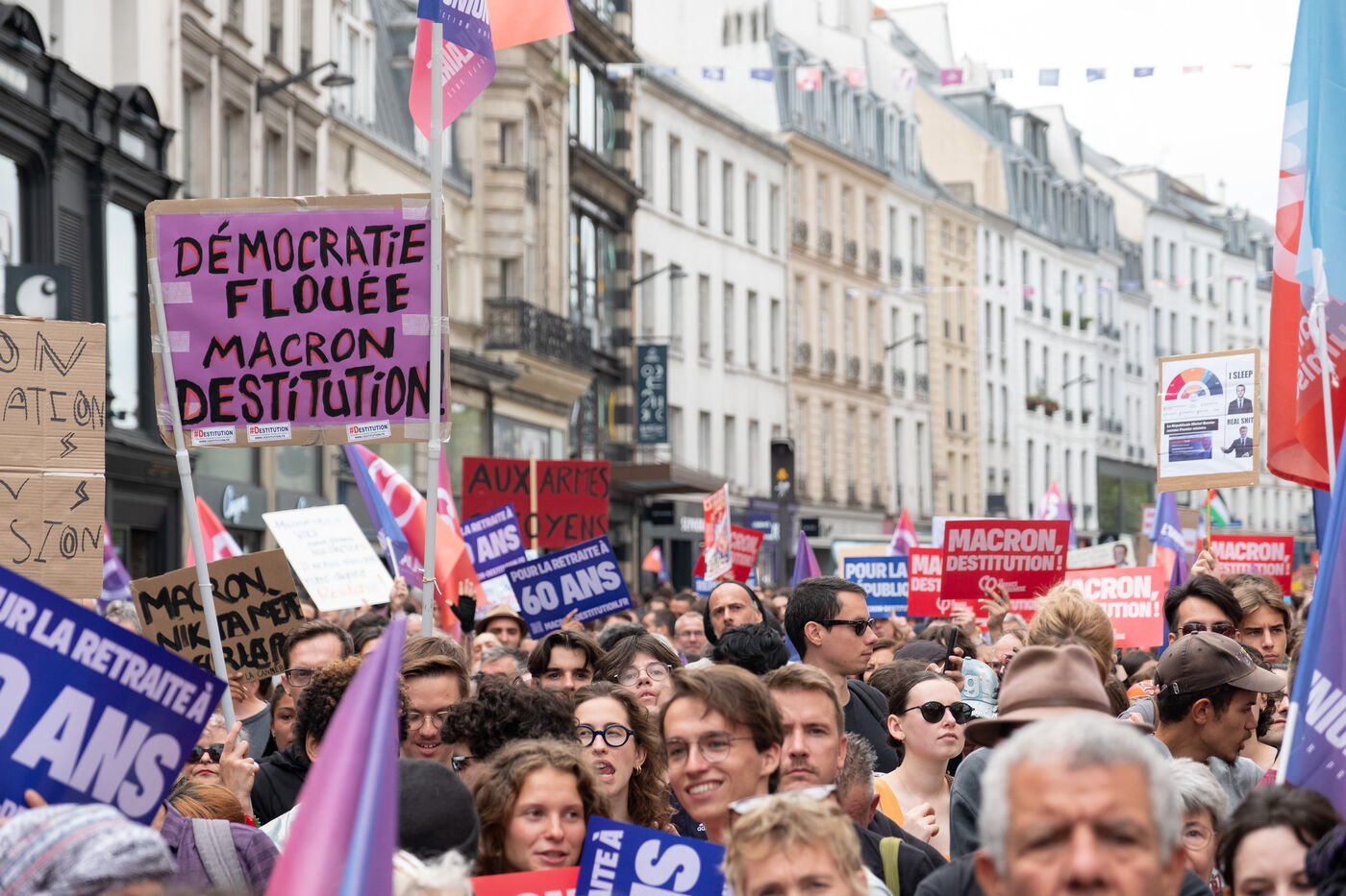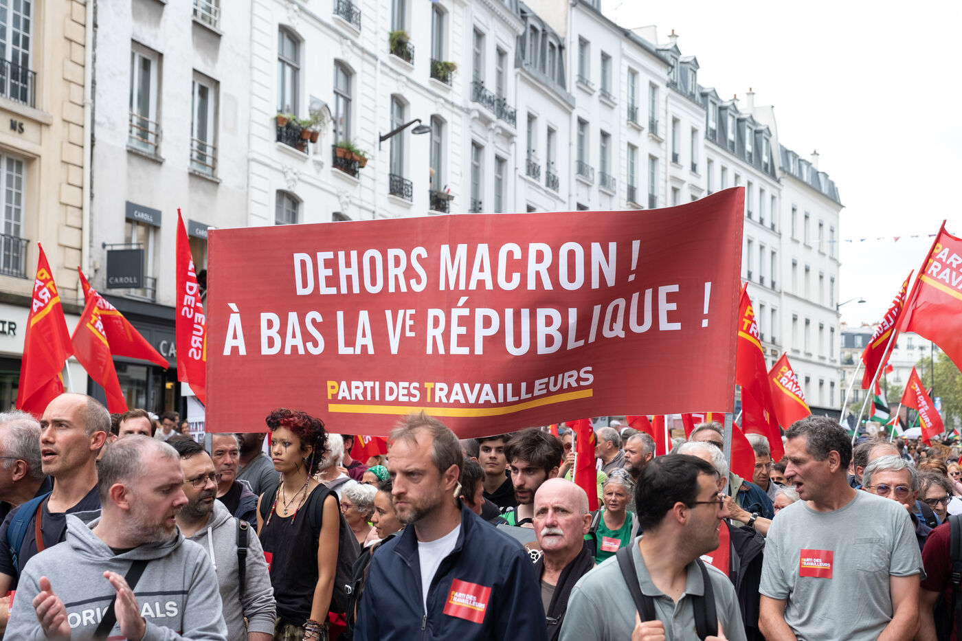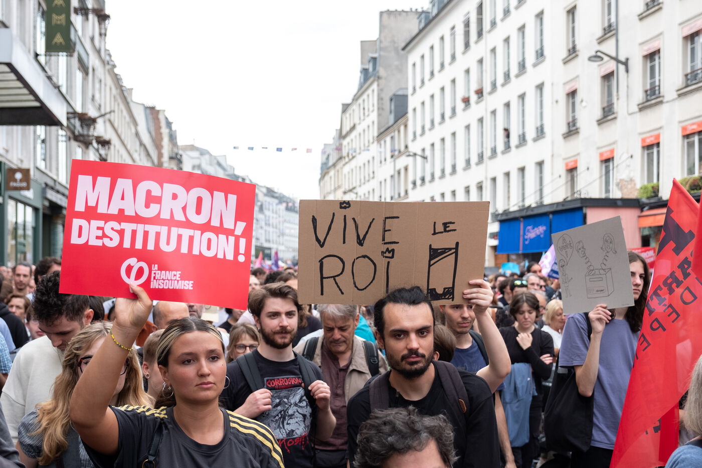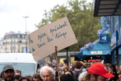 Manifestation pour la démocratie et contre la politique de Macron après l'élection de Michel Barnier premier ministre. L'appel à la mobilisation a été lancé par La France Insoumise (LFI), et les syndicats de jeunesse l’Union étudiante et l’Union syndicale lycéenne (USL).