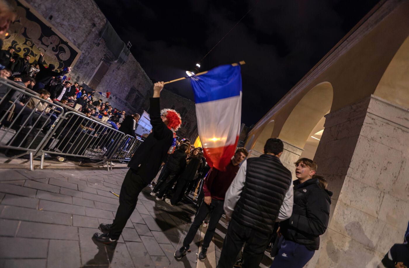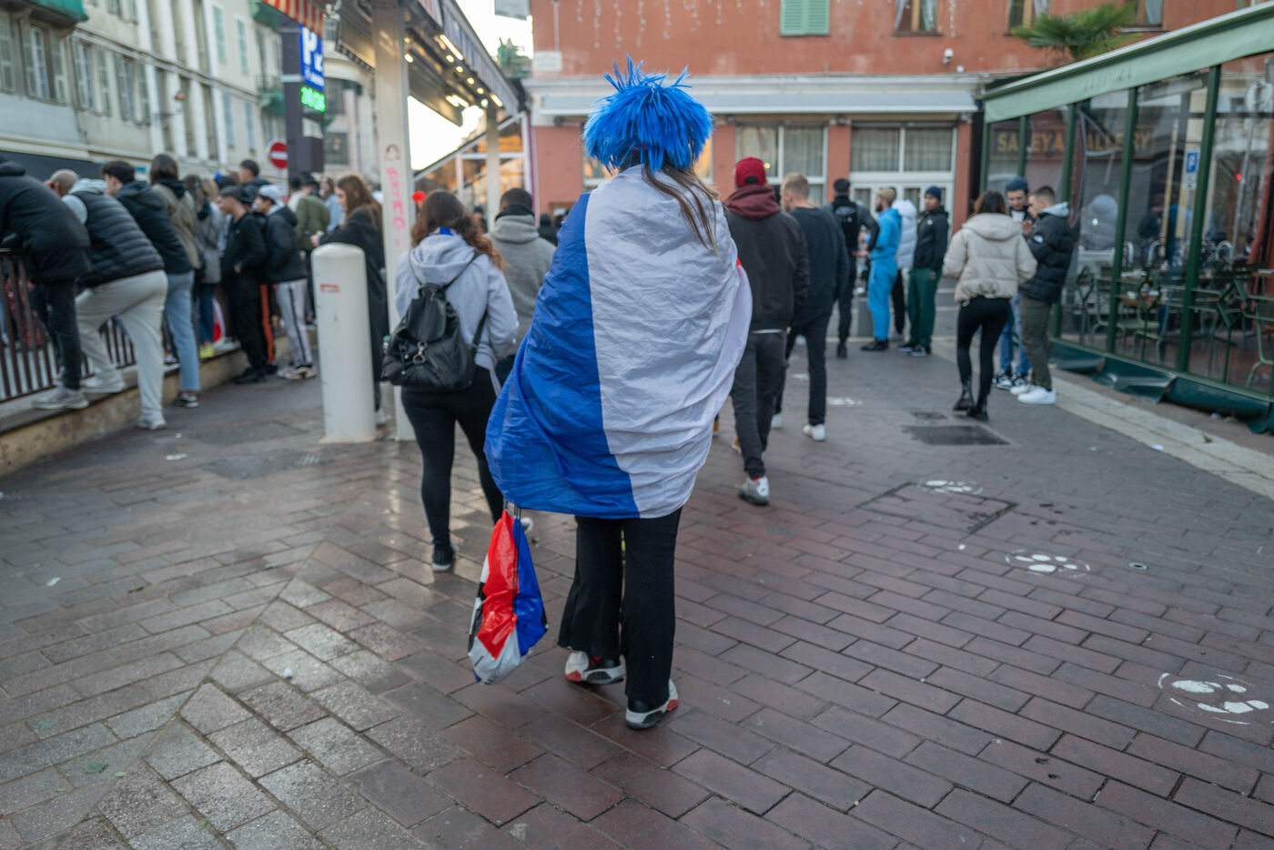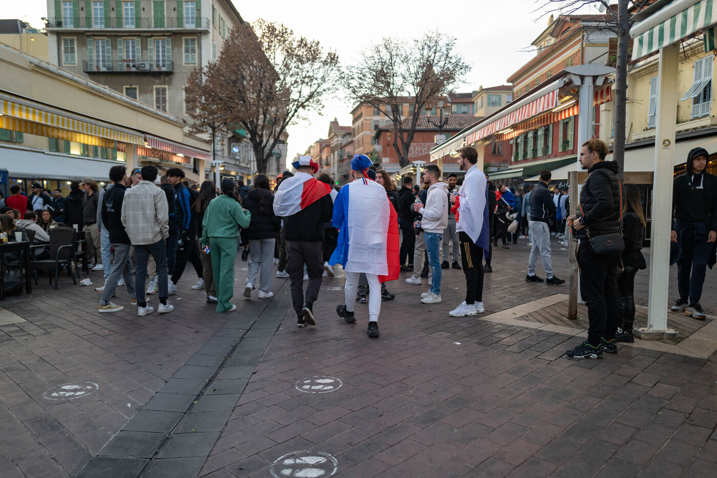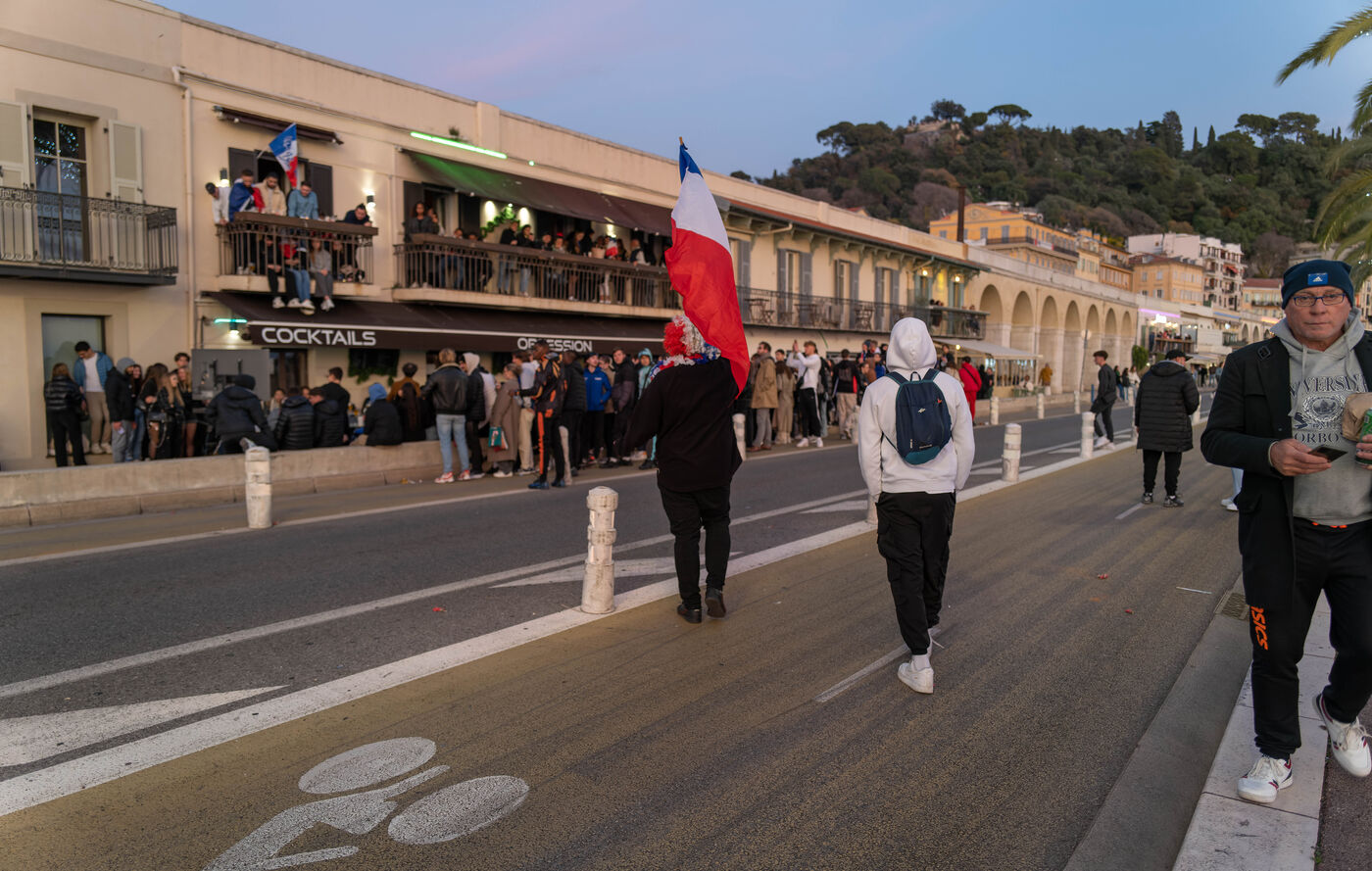 Les supporteurs et les fans de l'équipe de France, dans les rues de Nice, lors de la finale de la coupe du monde de football contre l'argentine.