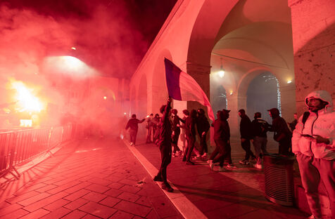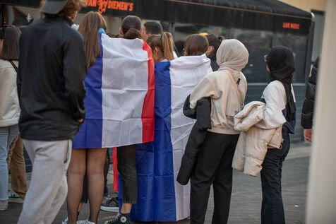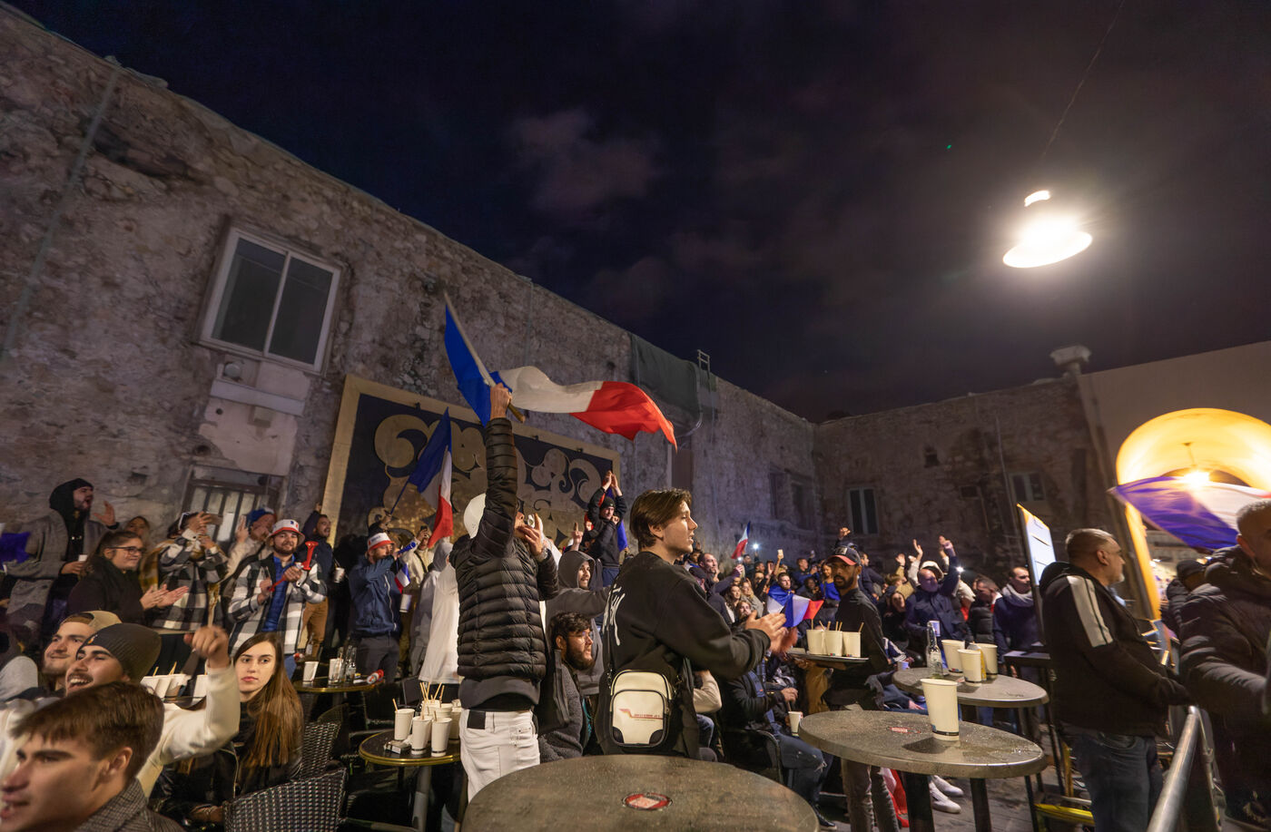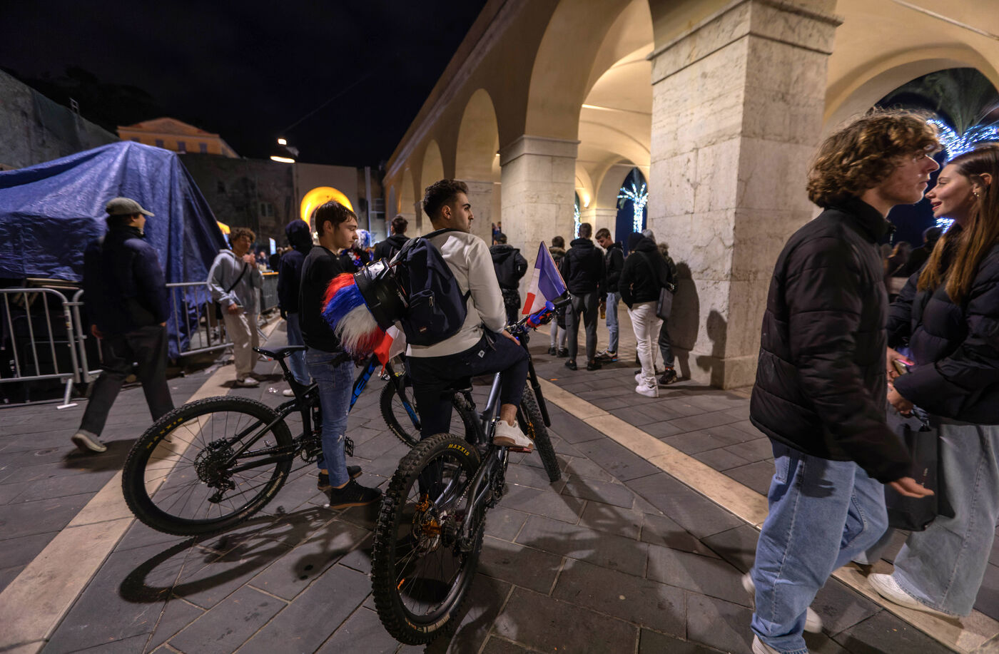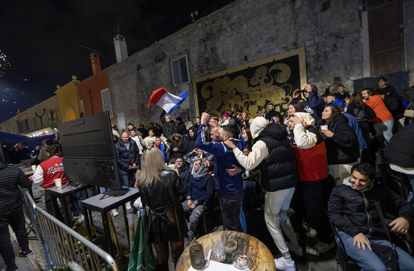 Les supporteurs et les fans de l'équipe de France, dans les rues de Nice, lors de la finale de la coupe du monde de football contre l'argentine.
