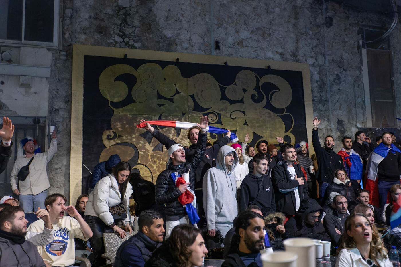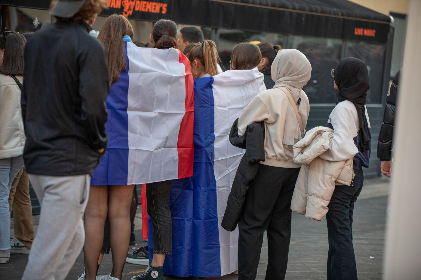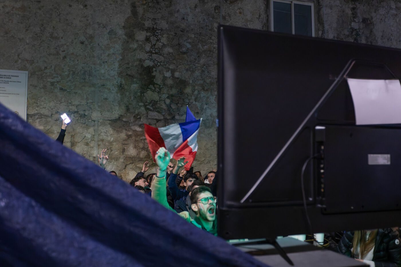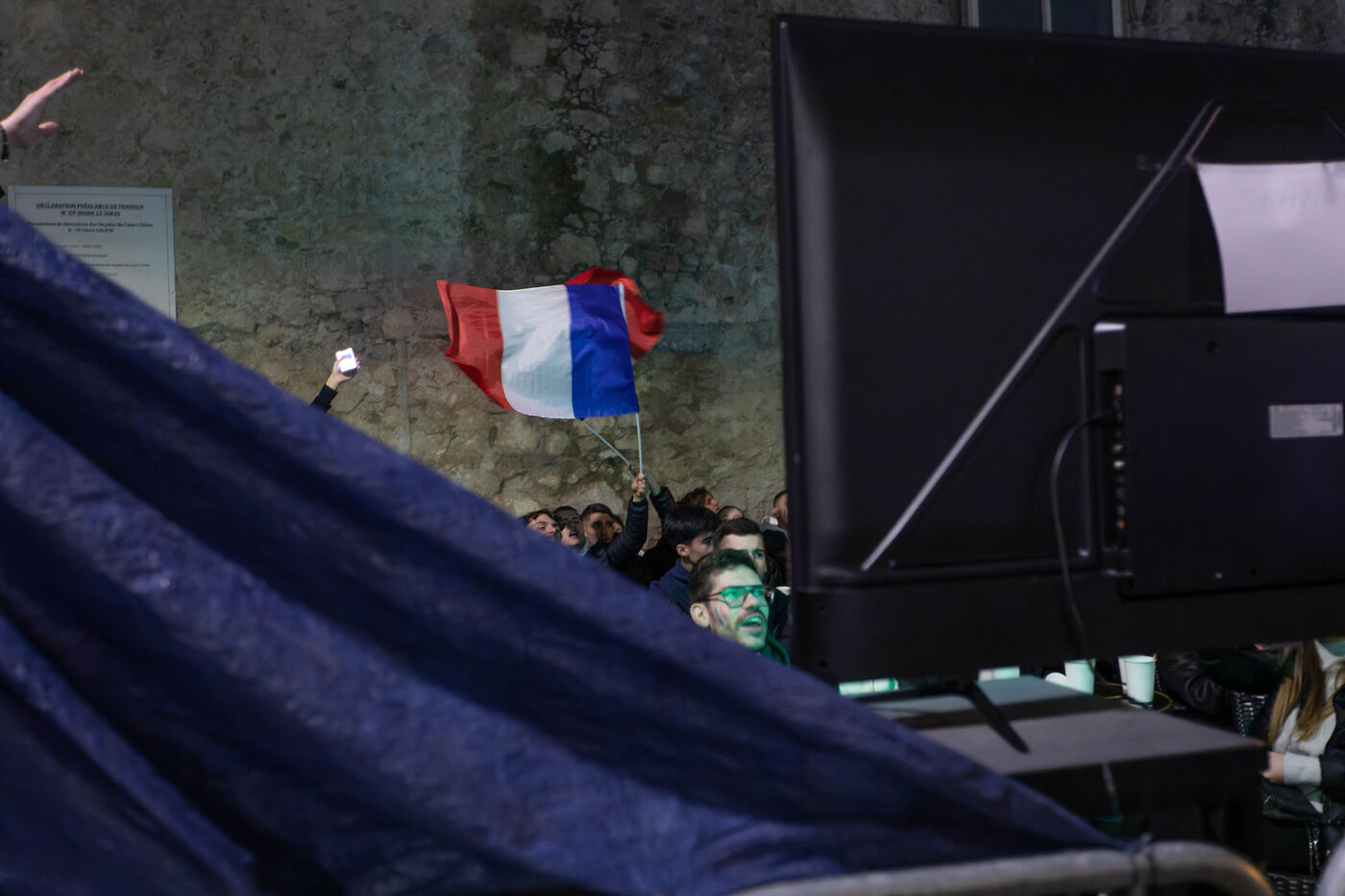The supporters and fans of the French team, in the streets of Nice, during the final of the football world cup against Argentina.