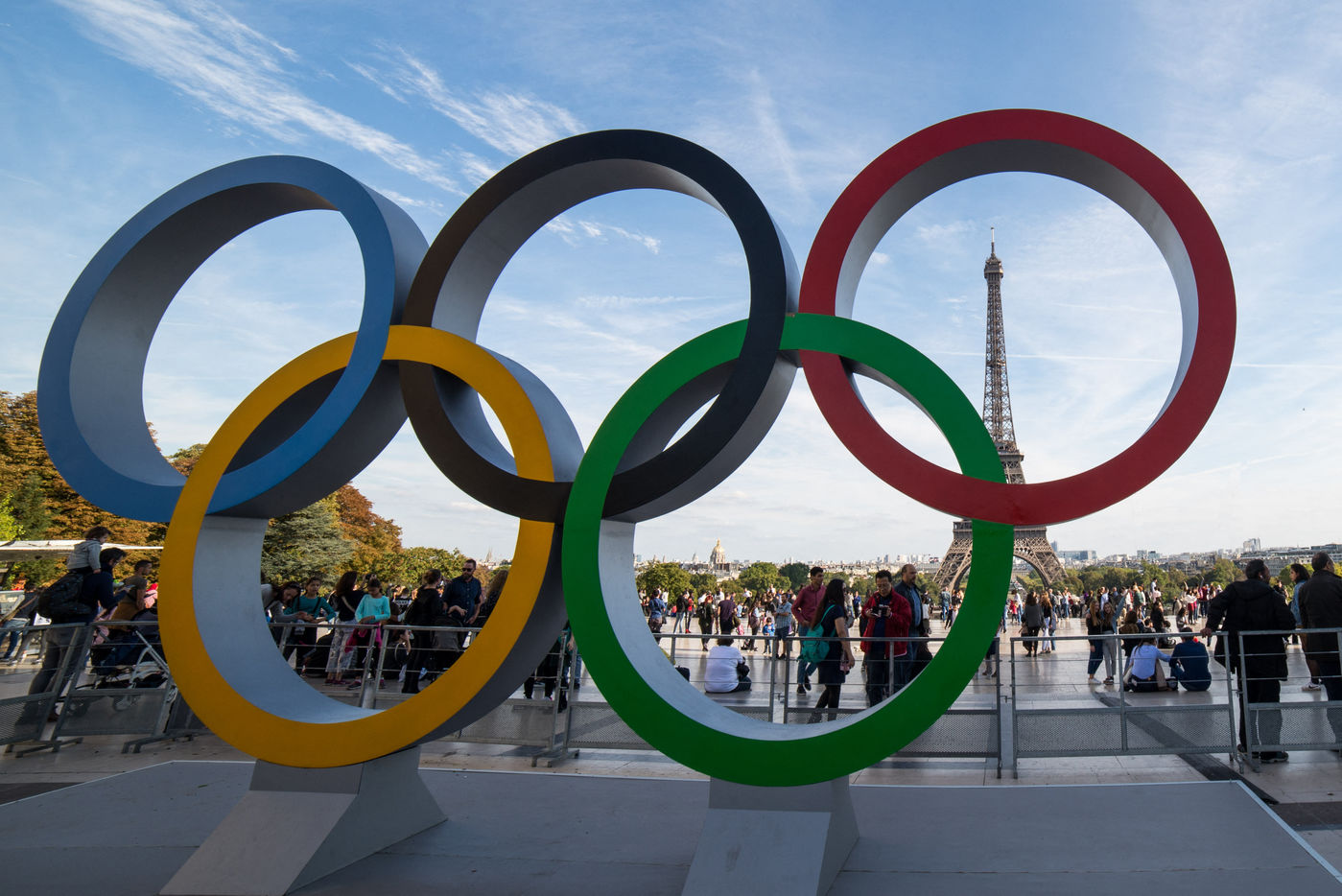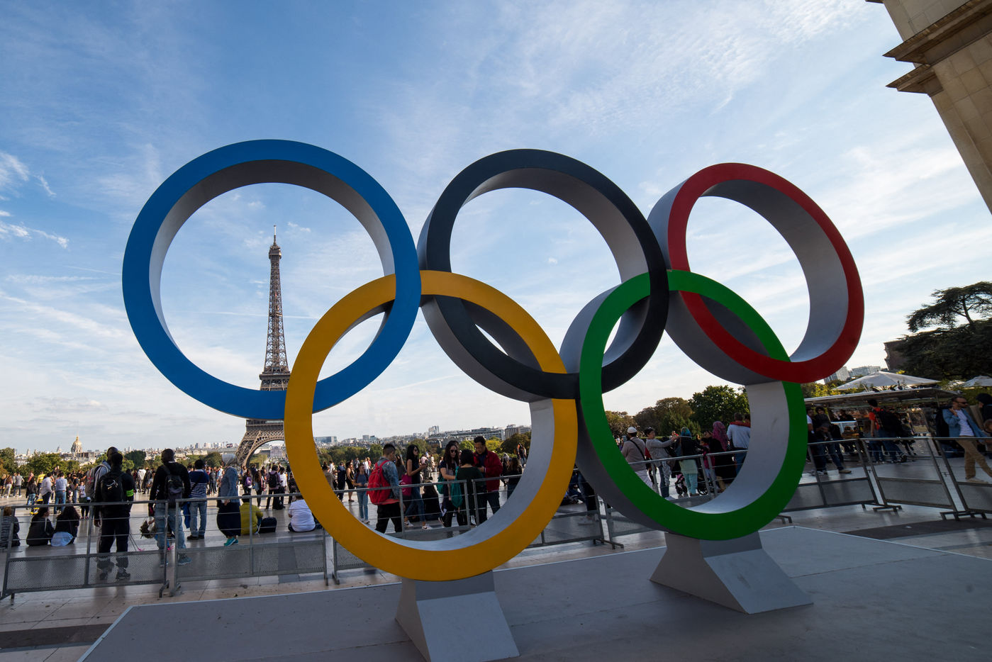 Les anneaux Olympiques sur le parvis du Trocadero