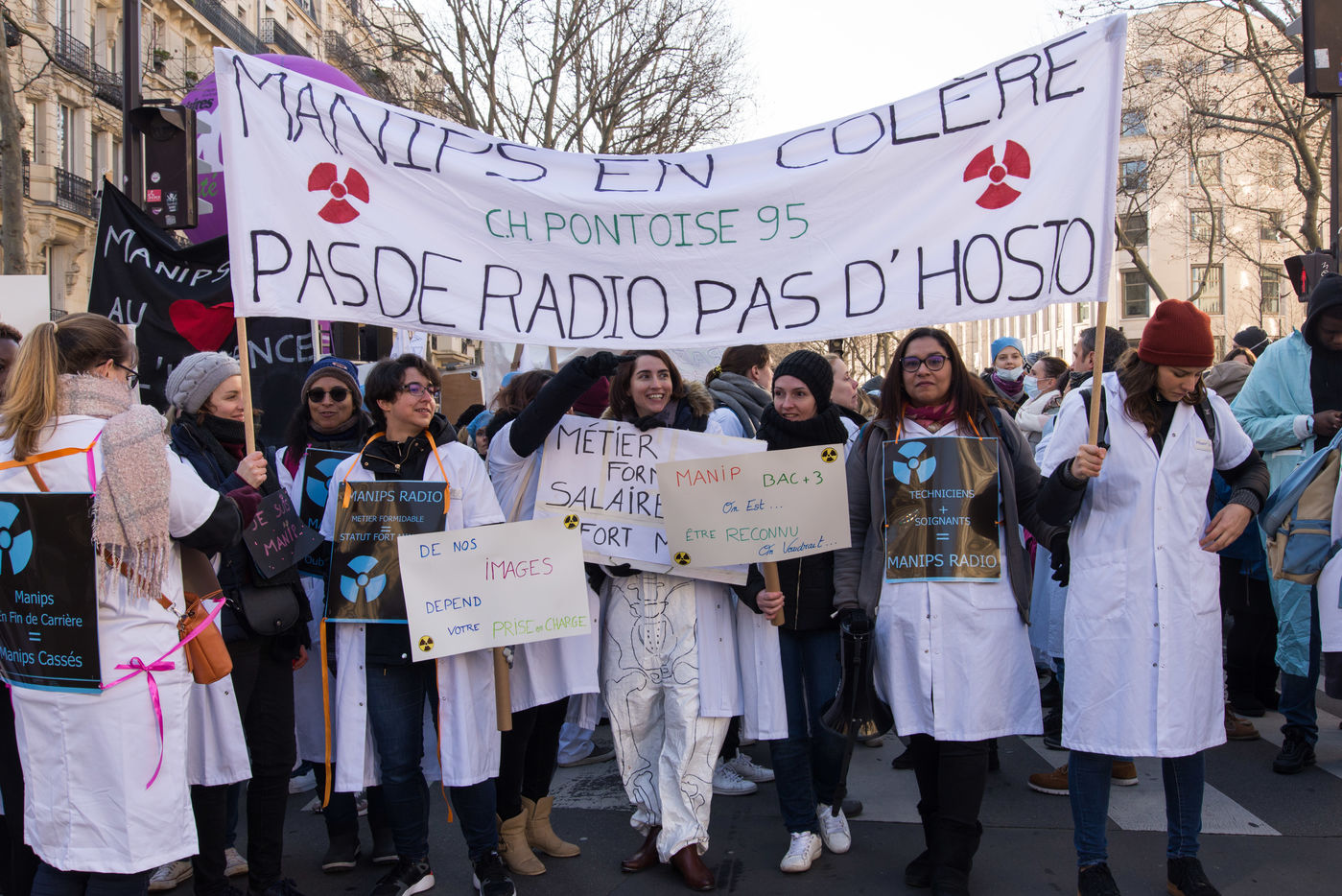 Les manipulateurs radio se mobilisent devant le ministère de la Santé. Ils demandent, entre autre : la reconaissance des risques specifiques liés à leur activité, la reconaissance de la pénibilité dans leur exercice professionnel, une reconaissance de leur role dans la prise en charge des urgences internes de l'hopital, une augmentation de la prime de sujétion, une revalorisation des dispositifs financiers compensant les mauvaises conditions de travail.