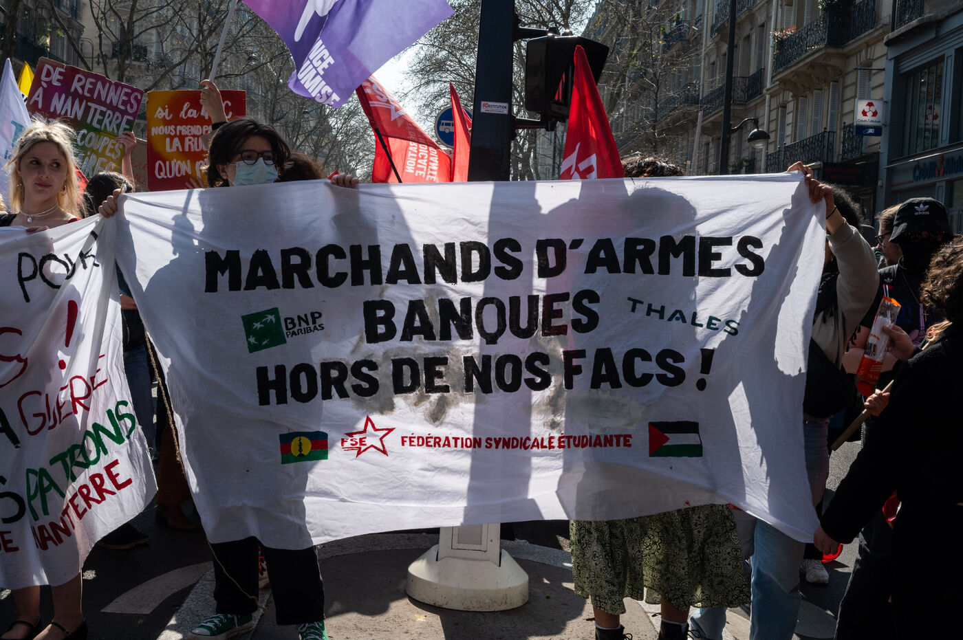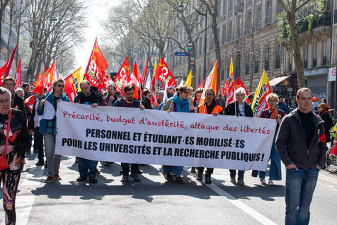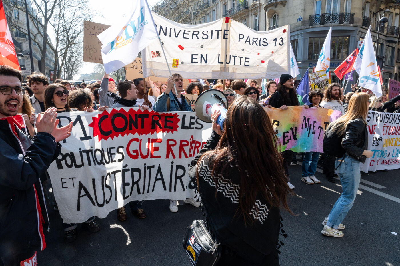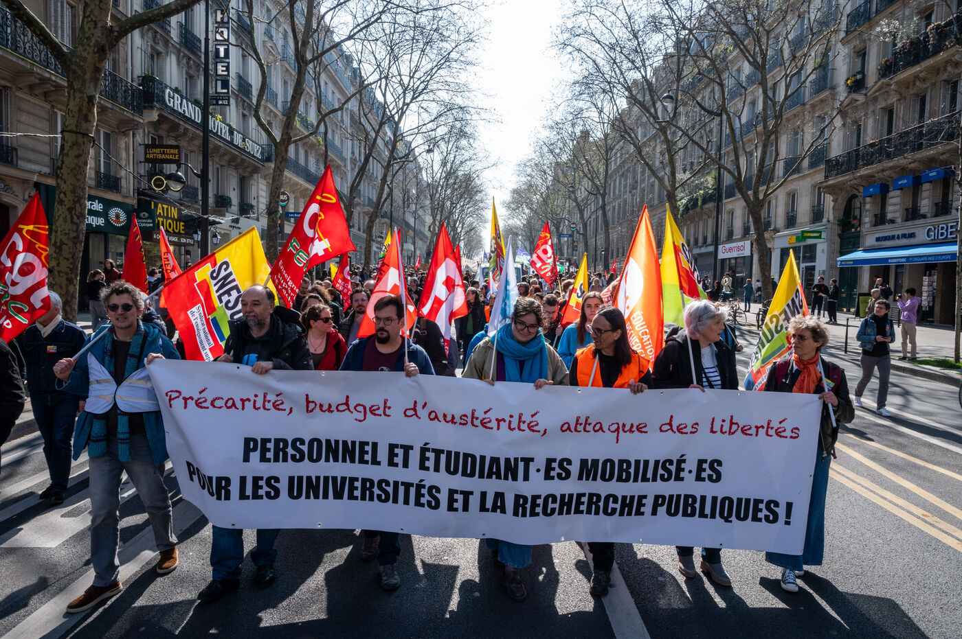 Mobilization for the public service of higher education and research (Enseignement Supérieur et de la Recherche ESR) at Place de la Sorbonne a Paris.