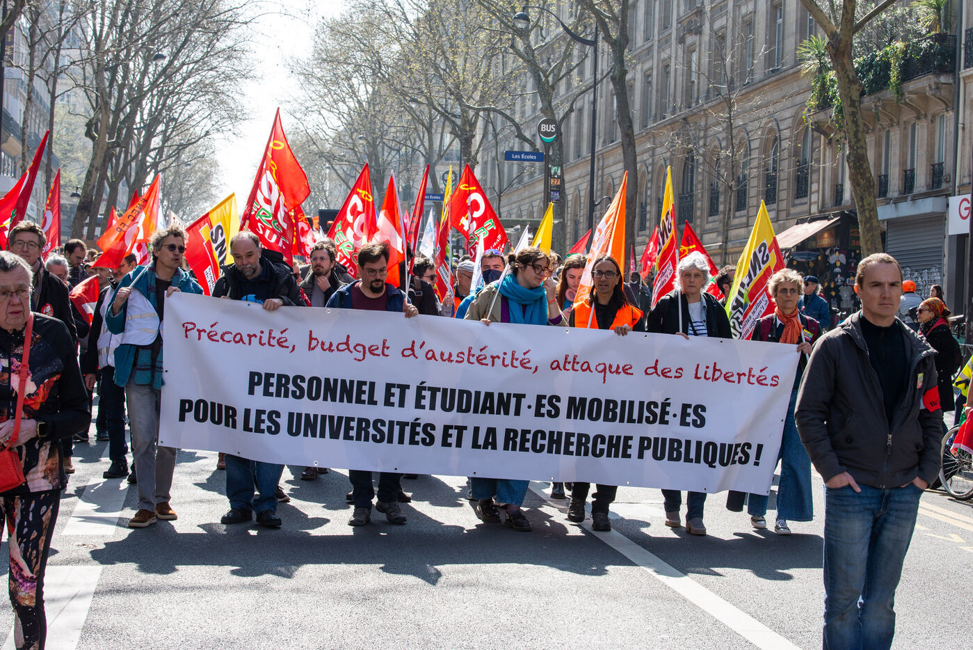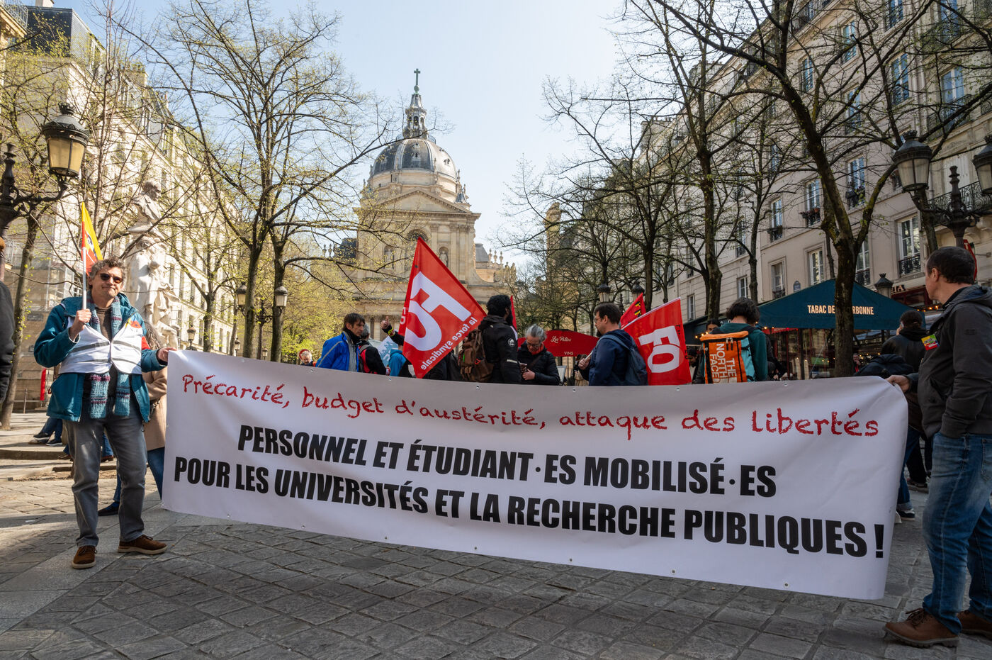 Mobilisation pour le service public de l’Enseignement supérieur et de la Recherche à la Place de la Sorbonne à Paris.
