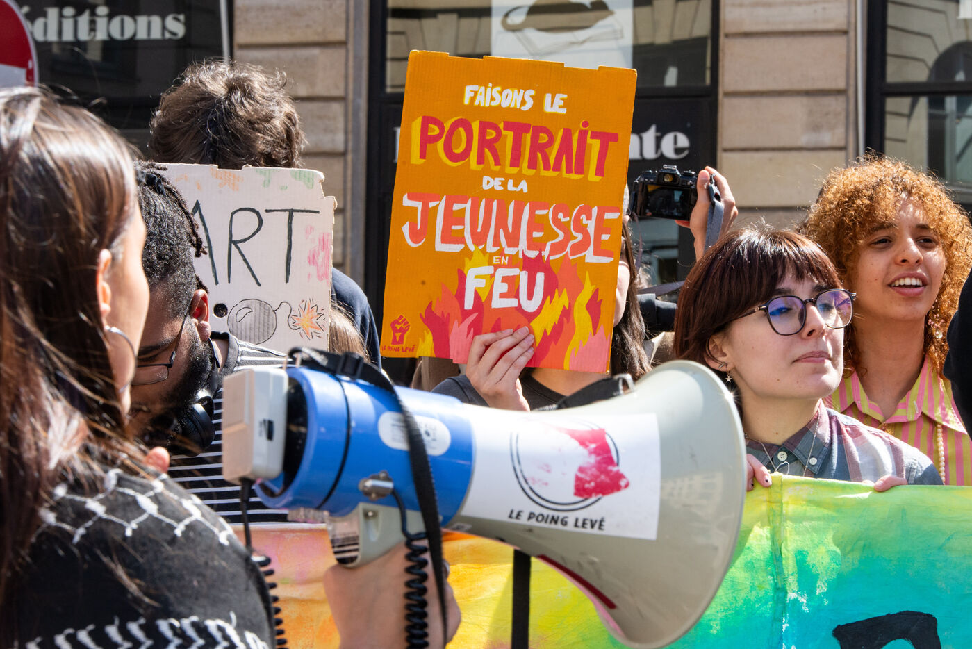 Demonstration by students from the faculties of the University of Paris (Université de Paris) on the Place de l'Odeon in Paris.
