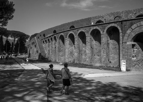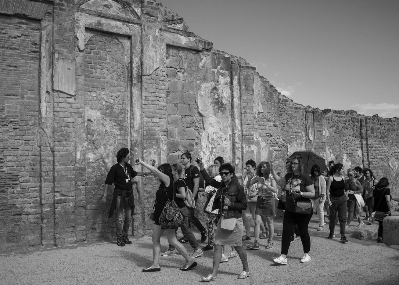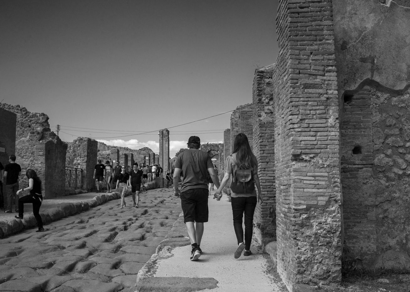 Tourisme dans les ruines de la ville de Pompei, en Italie, le 25 septembre 2018. Pompéi est une ville de l'Empire romain, située en Campanie. Y vivaient environ 30 000 habitants lorsqu'elle fut détruite lors de l'éruption du Vésuve en l'an 79 apr. J.-C. Le site archéologique est classé au patrimoine mondial de l'UNESCO depuis 1997, avec Herculanum et Torre Annunziata.