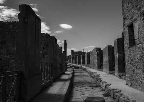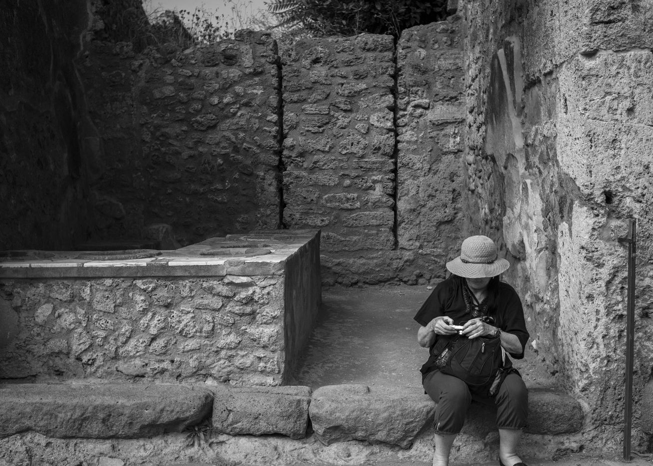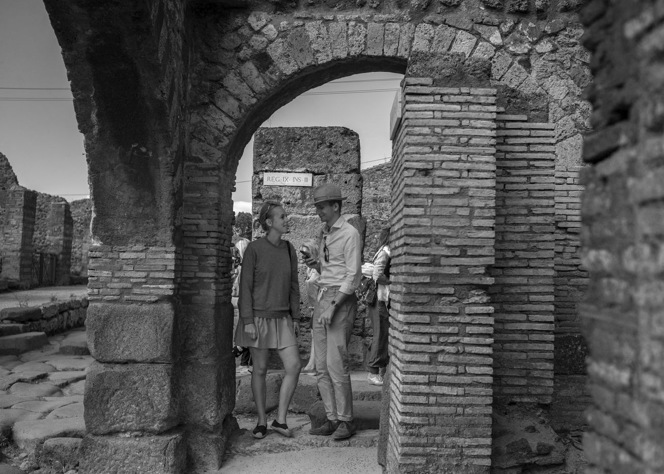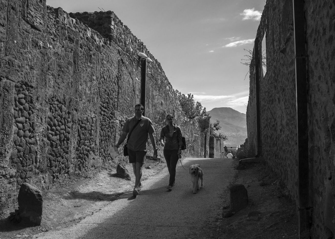 Tourisme dans les ruines de la ville de Pompei, en Italie, le 25 septembre 2018. Pompéi est une ville de l'Empire romain, située en Campanie. Y vivaient environ 30 000 habitants lorsqu'elle fut détruite lors de l'éruption du Vésuve en l'an 79 apr. J.-C. Le site archéologique est classé au patrimoine mondial de l'UNESCO depuis 1997, avec Herculanum et Torre Annunziata.