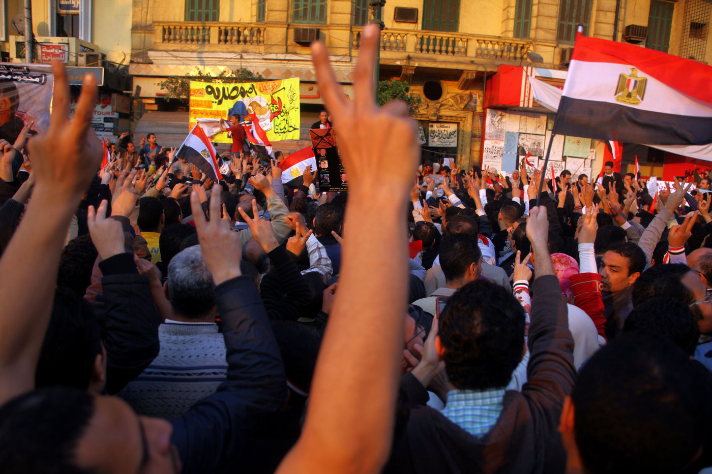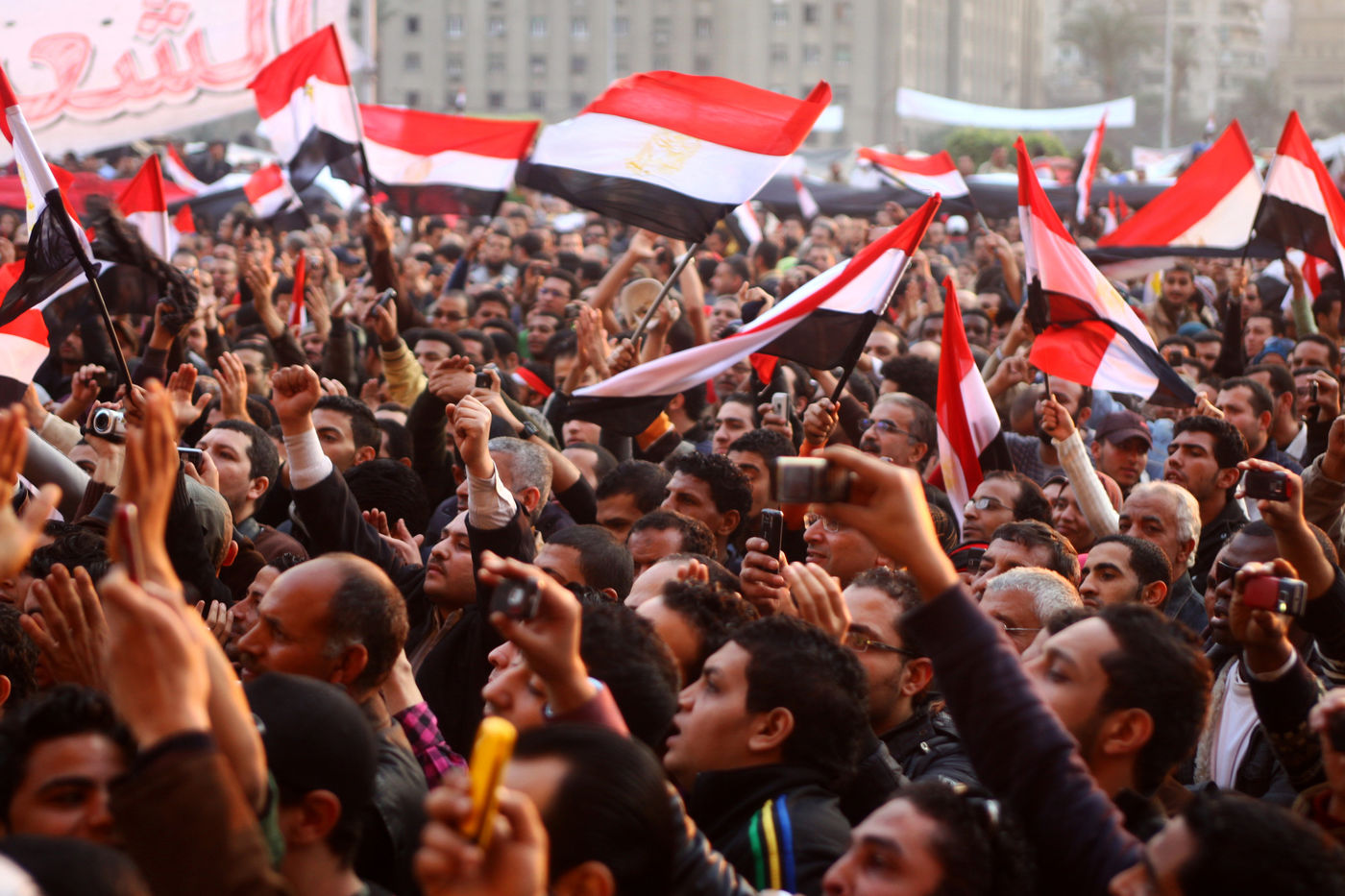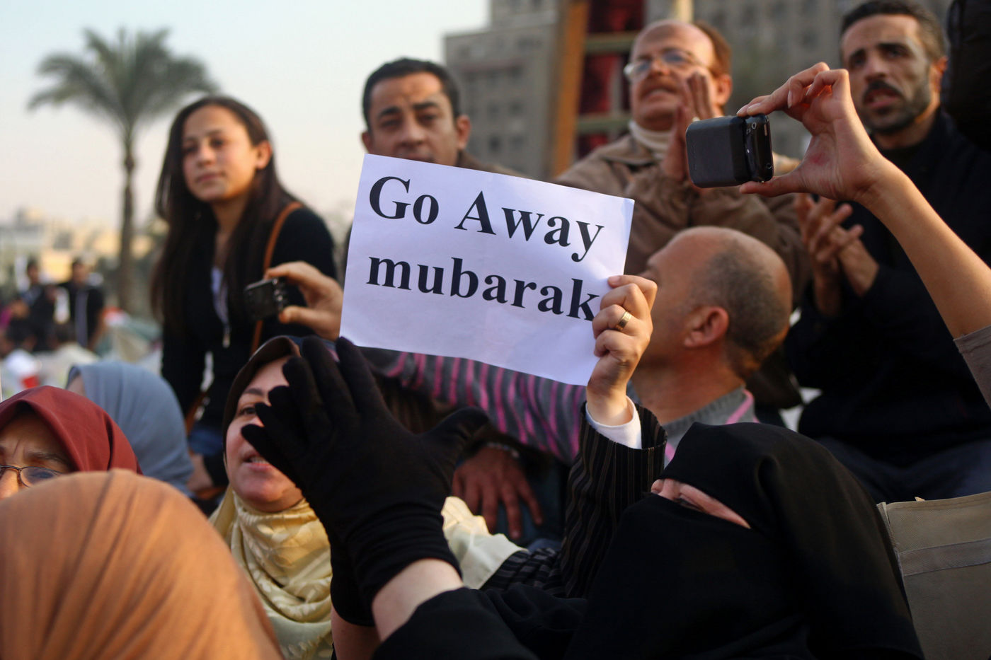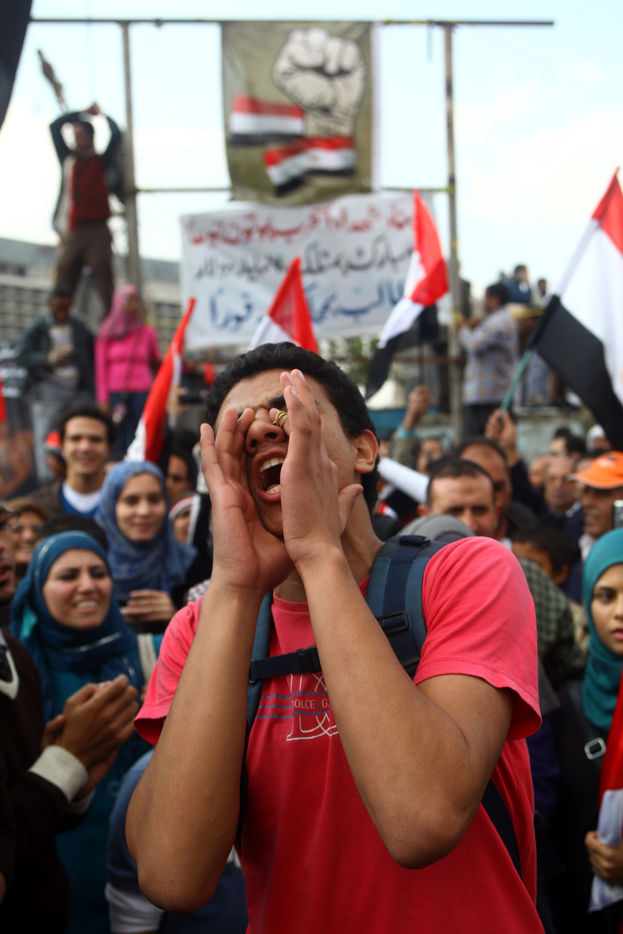 Manifestations anti-Hosni Mubarak sur la place Tahrir, épicentre de la contestation egyptienne au Caire, Egypte en février 2011.