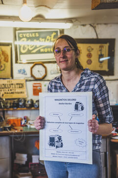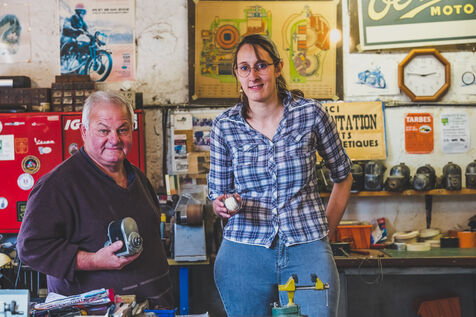 Lisa Bordes loves rare professions. Last year, she left the civil service, where she was teaching in Occitan in a bilingual French-Occitan school, to take up an unusual craft: repairing vintage motorbike, cars and tractors ignition coils. It's a rare and meticulous craft, practised by enthusiasts and practised by only 4 craftsmen in France today. But what is a ignition coil ? Thanks to its winding system through which an electromagnetic current flows, the ignition coil creates a spark that reaches the spark plug and enables the vehicle to start. The winding machine's job is to replace the copper winding of an ignition coil to restore its electrical properties. It's a precision job, carried out mainly by women in the first half of the 20th century, before automation. But Lisa's work doesn't stop at winding: she carries out a complete overhaul of the magnetos in the old vehicles of her customers, who are mainly men, but just as passionate as she is. Based in a village in the Gers, the young woman bought the workshop of the lively Francis Delord at the same time as his birthplace. At 68, Francis has decided to retire and move to a smaller house a few miles away. And Francis isn't doing things by halves: when he sold Lisa his workshop, he undertook to pass on his know-how to her. Accompanied by his old dog Max, he visits her from time to time to refine her skills in winding copper wire and assembling ignition coils. On each visit, Lisa praises her mentor's patience with her. Francis hides his game well. Extremely active, he still takes part in motorbike rallies all over the world. It's a tough job. If she wants to maintain a sufficient income, Lisa has to work non-stop. She has to sell 2 or 3 ignition coils a week to make a profit. But she has no regrets about her choice. Lisa loves her independence above all else; she enjoys the peace and quiet of the Gers countryside and working with her two faithful cats, Brume and Ephy.