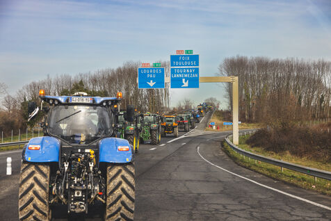 Depuis le 20 janvier 2024, les Jeunes Agriculteurs du département des Hautes Pyrénées effectuent avec près de 200 tracteurs des opérations escargot sur l'autoroute A64 et bloquent jour et nuit plusieurs de ses accès en direction de Toulouse et Lannemezan, dont celui de Séméac, pour réclamer des mesures fortes en soutien au secteur agricole qu'ils estiment sinistré. Beaucoup mettent en avant le manque d'attention porté à la maladie hémorragique épizootique (MHE), un virus qui atteint les troupeaux de bovins et se manifeste par des décès des bêtes et des avortements spontanés. Entre contraintes administratives, contrôles incessants et augmentation non compensée de la taxe sur le gazole non routier pour alimenter les tracteurs, les agriculteurs s'estiment en effet pris à la gorge. Rejoints par d autres syndicats dont la FNSEA, le mouvement touche de plus en plus de départements en Occitanie. Il a vu la visite d'hommes politiques nationaux et locaux comme le Député Renaissance (parti présidentiel) Benoit Mournet et Jean Lassalle, agriculteur, maire et ancien député, qui a exprimé son intention de se présenter aux élections européennes de juin 2024. Jean Lassalle s'est rendu à l'accès autoroutier (A64 - Tarbes Est) de Séméac pour rencontrer les jeunes agriculteurs et leur exprimer son soutien. Cette journée de mobilisation fait suite à d'autres mouvements sociaux. Comme un rappel au mouvement du retournement à l'envers des panneaux signalétiques des villes pour critiquer une politique agricole gouvernementale qui "marche sur la tête", le panneau signalétique de Séméac était également retourné. Les jeunes agriculteurs se sont dits determinés à faire durer le mouvement.