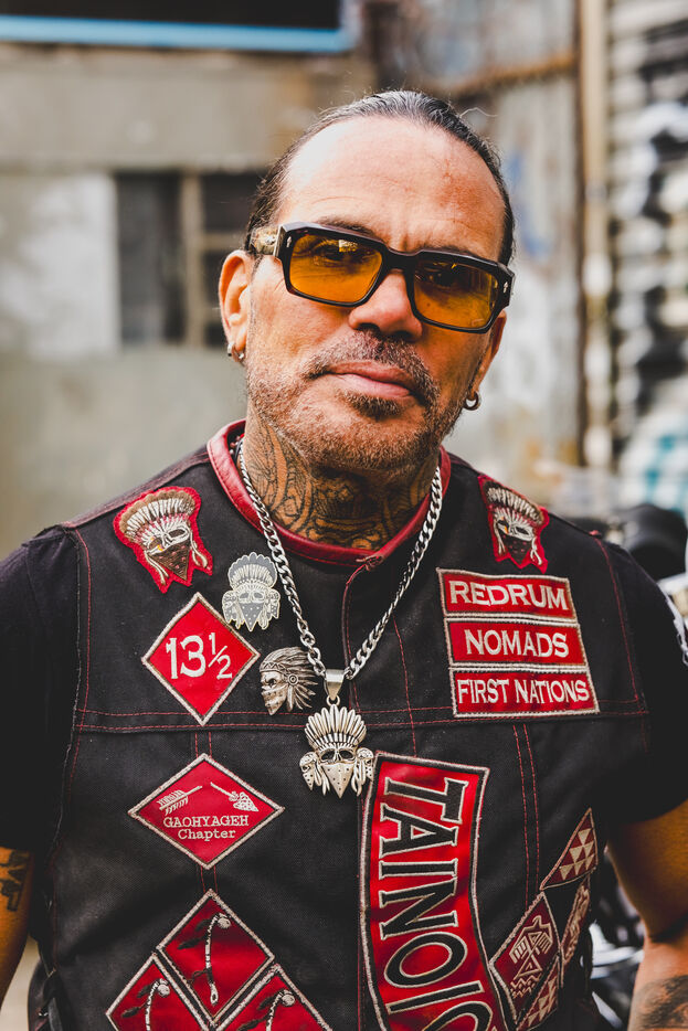 Meeting in Brooklyn with Cliff Matias, Native American and president of the international motorcycle club Redrum MC. This club with Native American roots welcomes members from all backgrounds and uses motorcycles as a tool for social change and solidarity. Their motto: Spreading positivity on two wheels. During the interview with Cliff and club member Howard, Stella Standingbear, a young award-winning Native American hip-hop singer and also a biker, arrives.