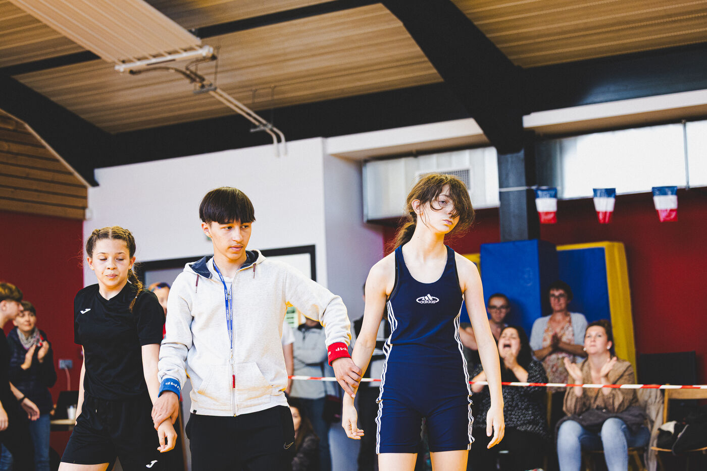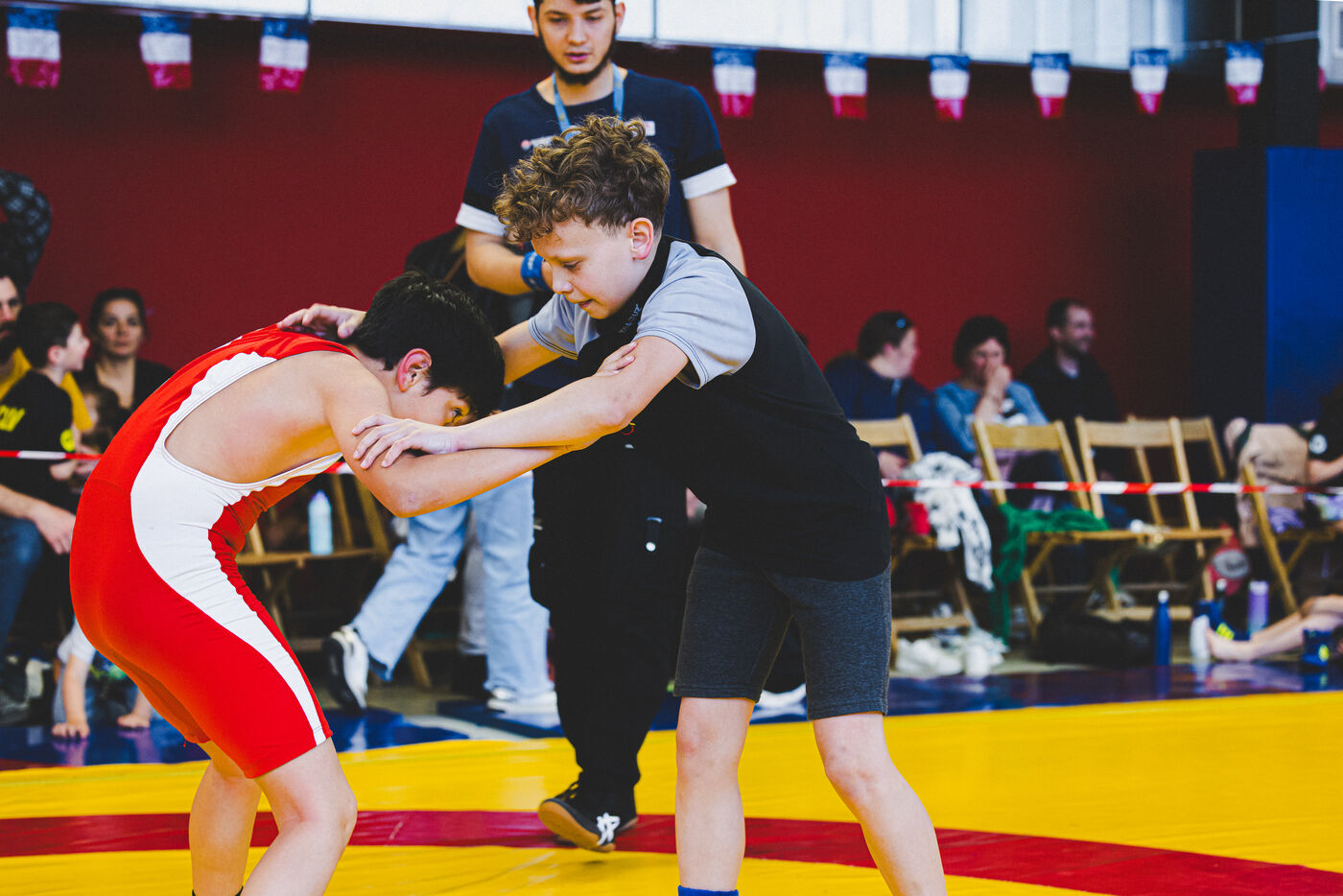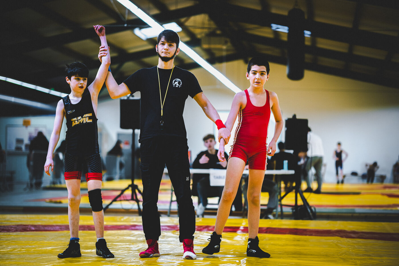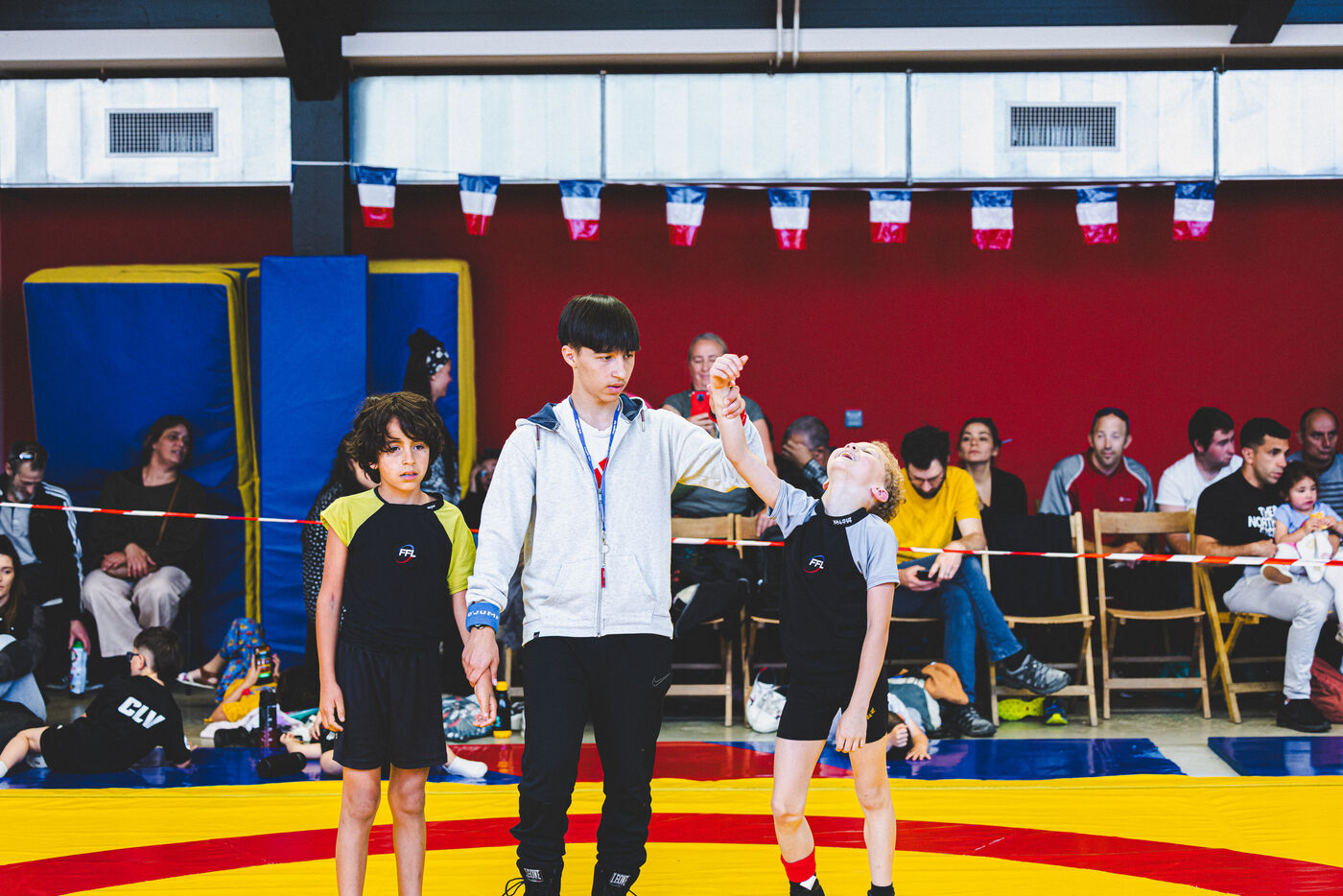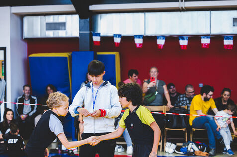 This series shows various wrestling competitions in Bigorre, South-West of France. Maubourguet and Vic-en-Bigorre Wrestling Club hosted competitions bringing together around one hundred junior wrestlers from clubs in Occitanie, including Montauban, Toulouse, Tarbes, Maubourguet, and Vic-en-Bigorre. Girls and boys competed in often spectacular mixed matches in front of their families. This sport, which attracts a diverse audience in Occitanie, benefits from the experience and wrestling culture of coaches of Chechen origin. The development of the Bigourdane school of wrestling is greatly indebted to the late Charly Cancel, a national referee and regional and departmental wrestling administrator, whose sons have continued his work in the Bigorre region.