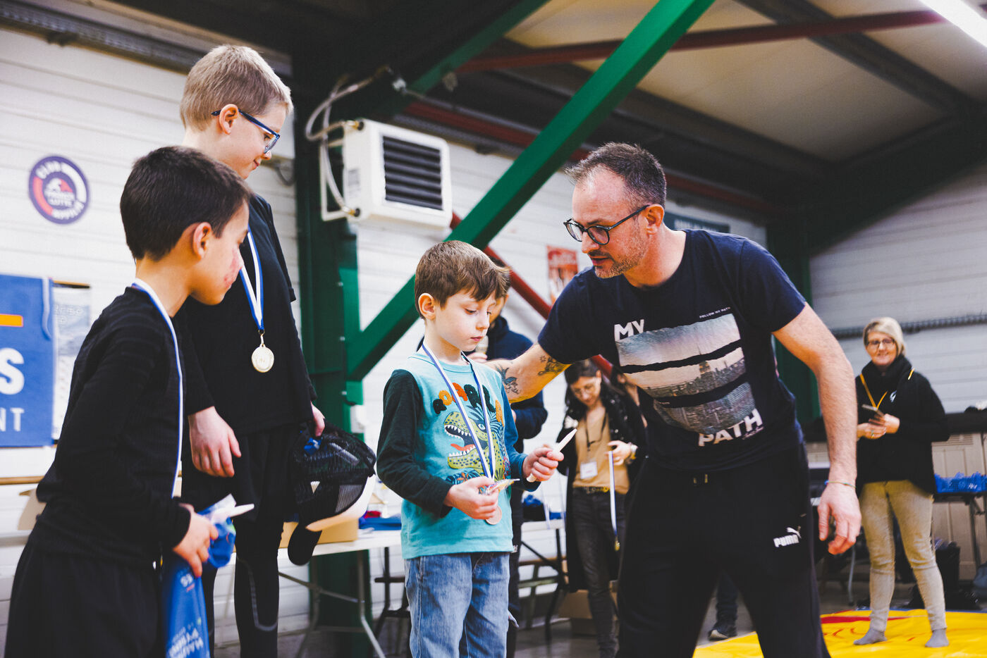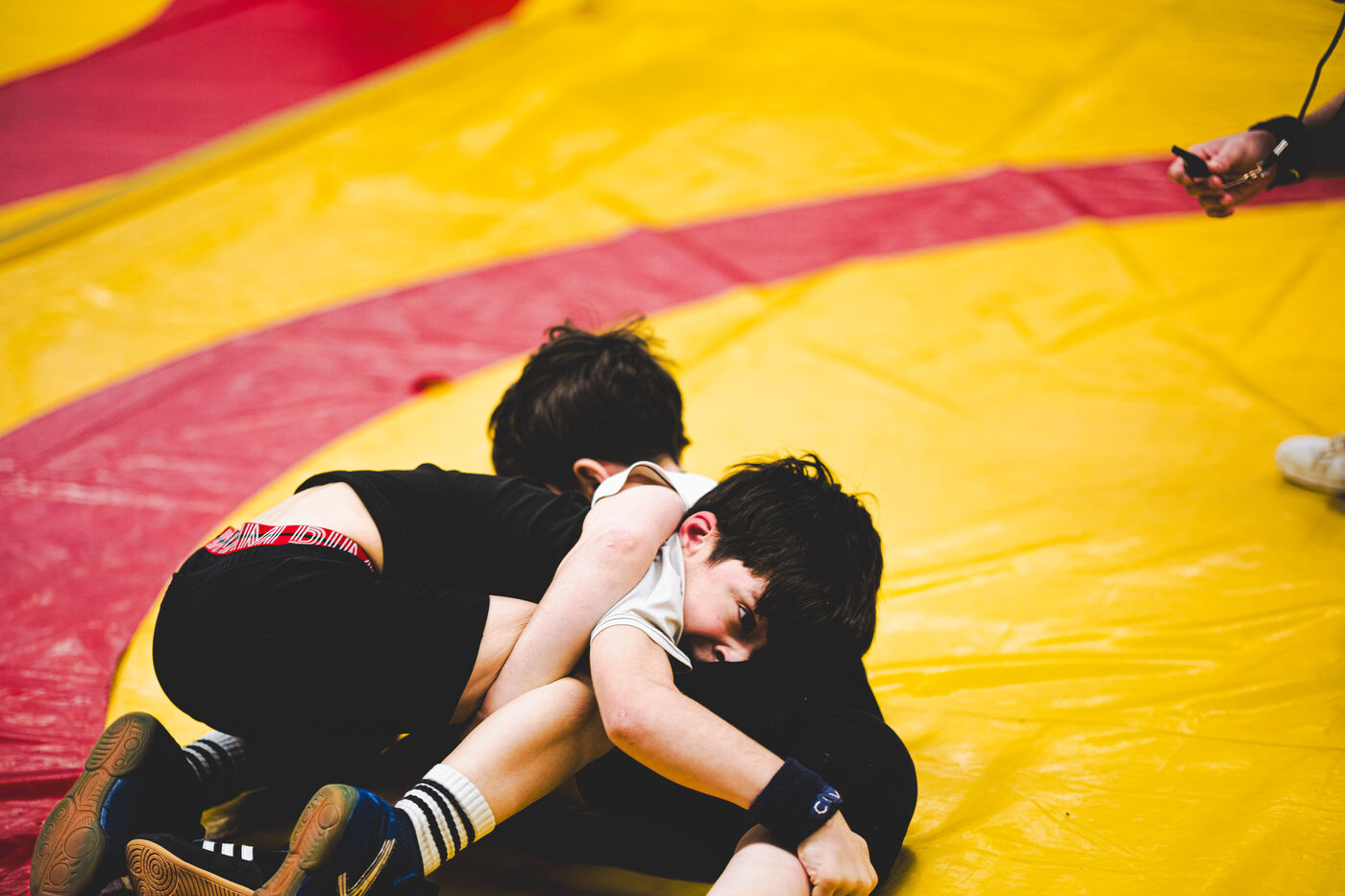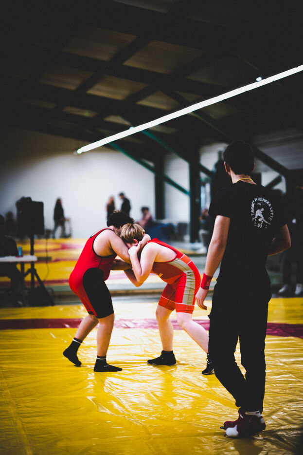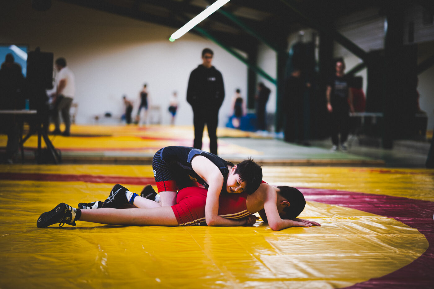 This series shows various wrestling competitions in Bigorre, South-West of France. Maubourguet and Vic-en-Bigorre Wrestling Club hosted competitions bringing together around one hundred junior wrestlers from clubs in Occitanie, including Montauban, Toulouse, Tarbes, Maubourguet, and Vic-en-Bigorre. Girls and boys competed in often spectacular mixed matches in front of their families. This sport, which attracts a diverse audience in Occitanie, benefits from the experience and wrestling culture of coaches of Chechen origin. The development of the Bigourdane school of wrestling is greatly indebted to the late Charly Cancel, a national referee and regional and departmental wrestling administrator, whose sons have continued his work in the Bigorre region.