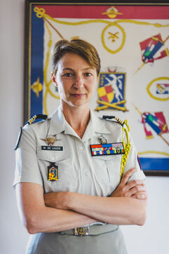 Aux termes d'une cérémonie de passation de commandement avec son prédécesseur le Colonel Tristan Zeller, le Colonel Marie de Lazzer, devient la première femme à commander le 35ème régiment d'Artillerie Parachutiste à Tarbes et à commander un régiment parachutiste en France. Elle a partagé sa fierté, son émotion et son sentiment d'humilité "parce qu'en face, il y a des hommes et des femmes remarquables, dans leur niveau d'expertise, dans leur sens de l'engagement. Des hommes et des femmes auxquels je vais dire vous partez au combat et peut-être que vous ne reviendrez pas tous". Faisant sienne la devise de Lyautey, « La joie de l'âme est dans l'action », la nouvelle cheffe de corps a indiqué les deux priorités pour son unité: être prête à être déployée avec le matériel en condition opérationnelle optimale et des hommes formés à l'action; agir en direction de l'environnement du régiment, notamment les familles et les partenaires. Non issue d'une famille de militaires, elle a orienté sa carrière vers l'artillerie légère parce qu'elle voulait "du léger, du souple, du félin, quelque chose qui manœuvre vite, avec cet état d'esprit, un peu d'audace, sauter en parachute et partir à l'aventure". Et de rappeler l'importance, au regard des enjeux géopolitiques actuels, de maintenir les capacités (3D) comme l'artillerie parachutiste (loin, haut et large) qui offrent des modes d'action dans la profondeur.