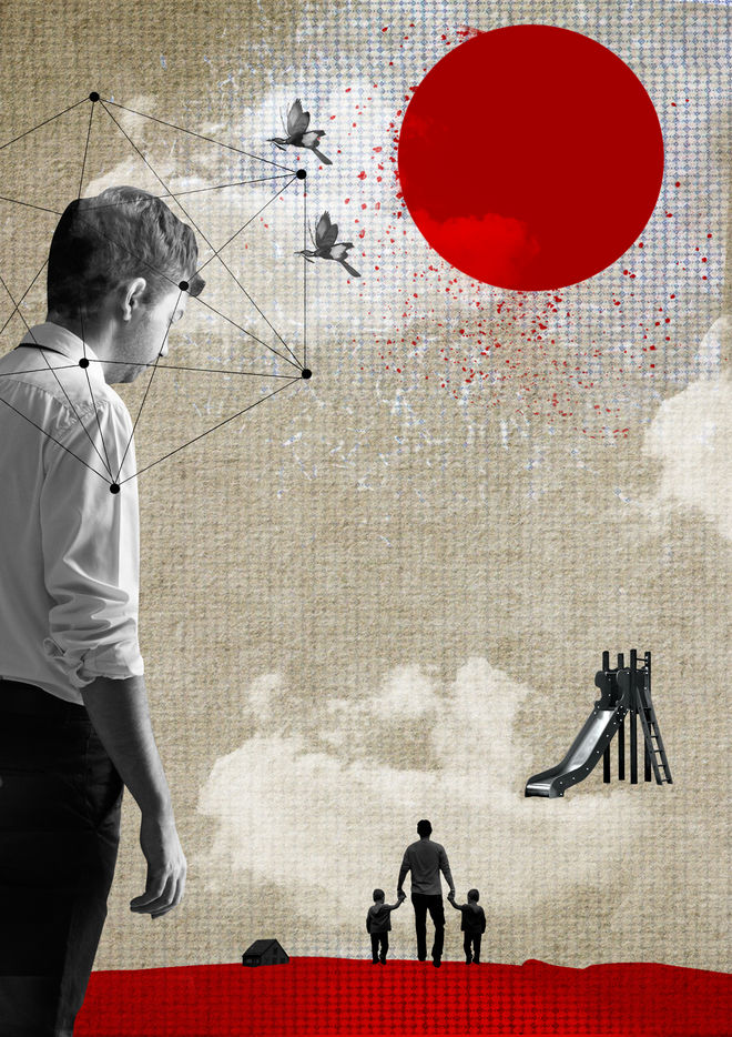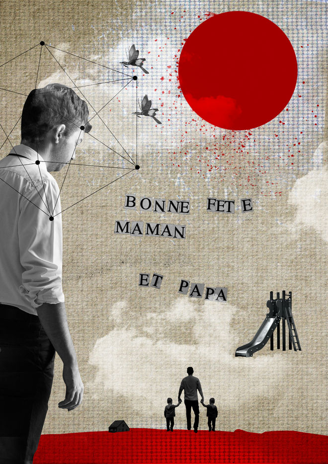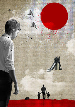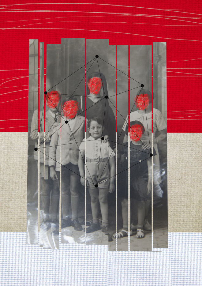 Collages et photomontages sur la thématique des violences familiales : une fois adulte, un homme se souvient des violences vécues dans son enfance