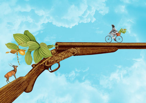 Série de collages sur le débat de l'interdiction de la chasse le week end