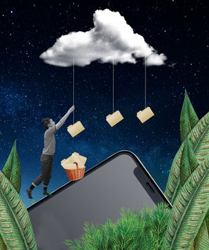 série de collages autour du thème de la réduction d'empreinte numérique et de comment adapter notre utilisation des mails et du cloud pour une pratique plus respectueuse de l'environnement.